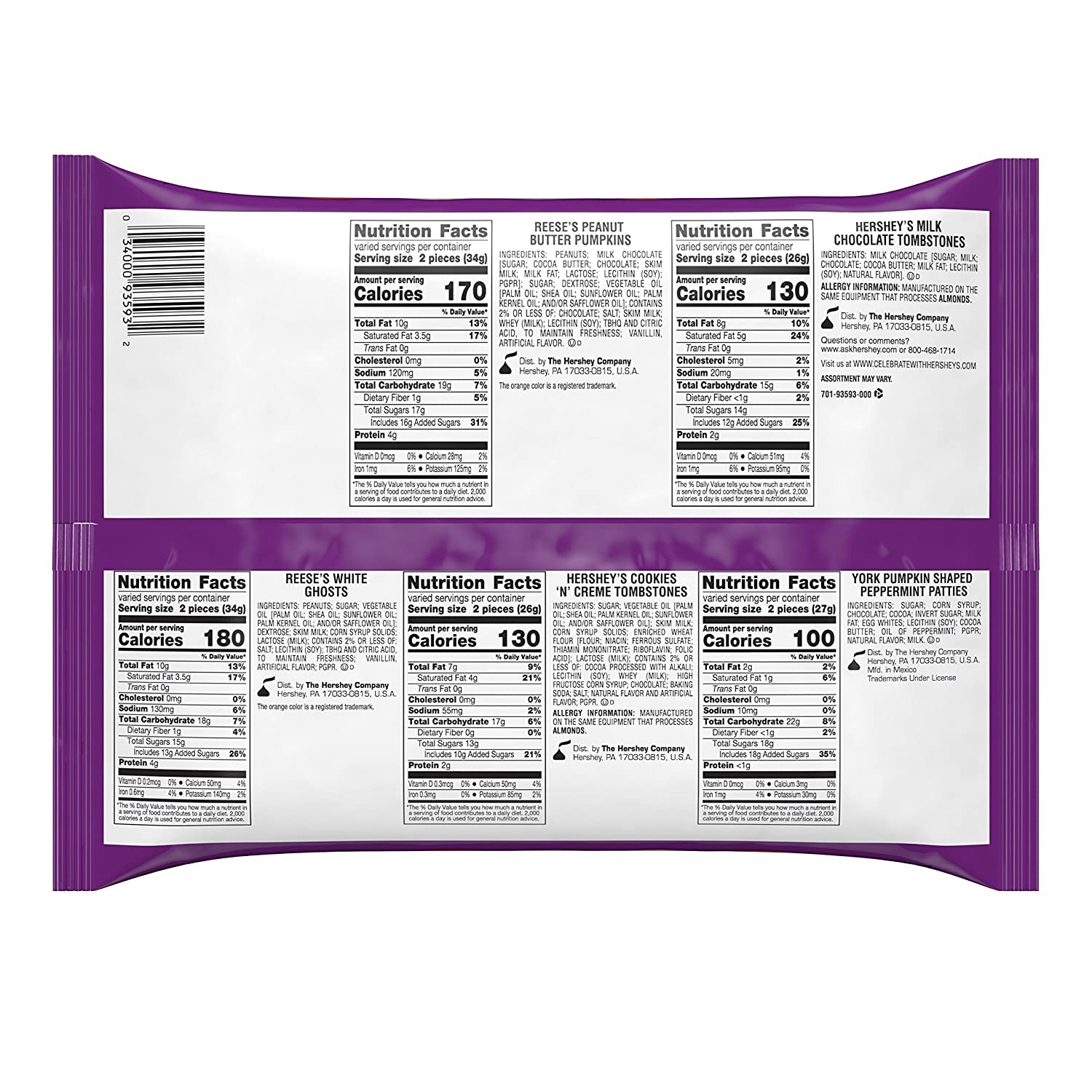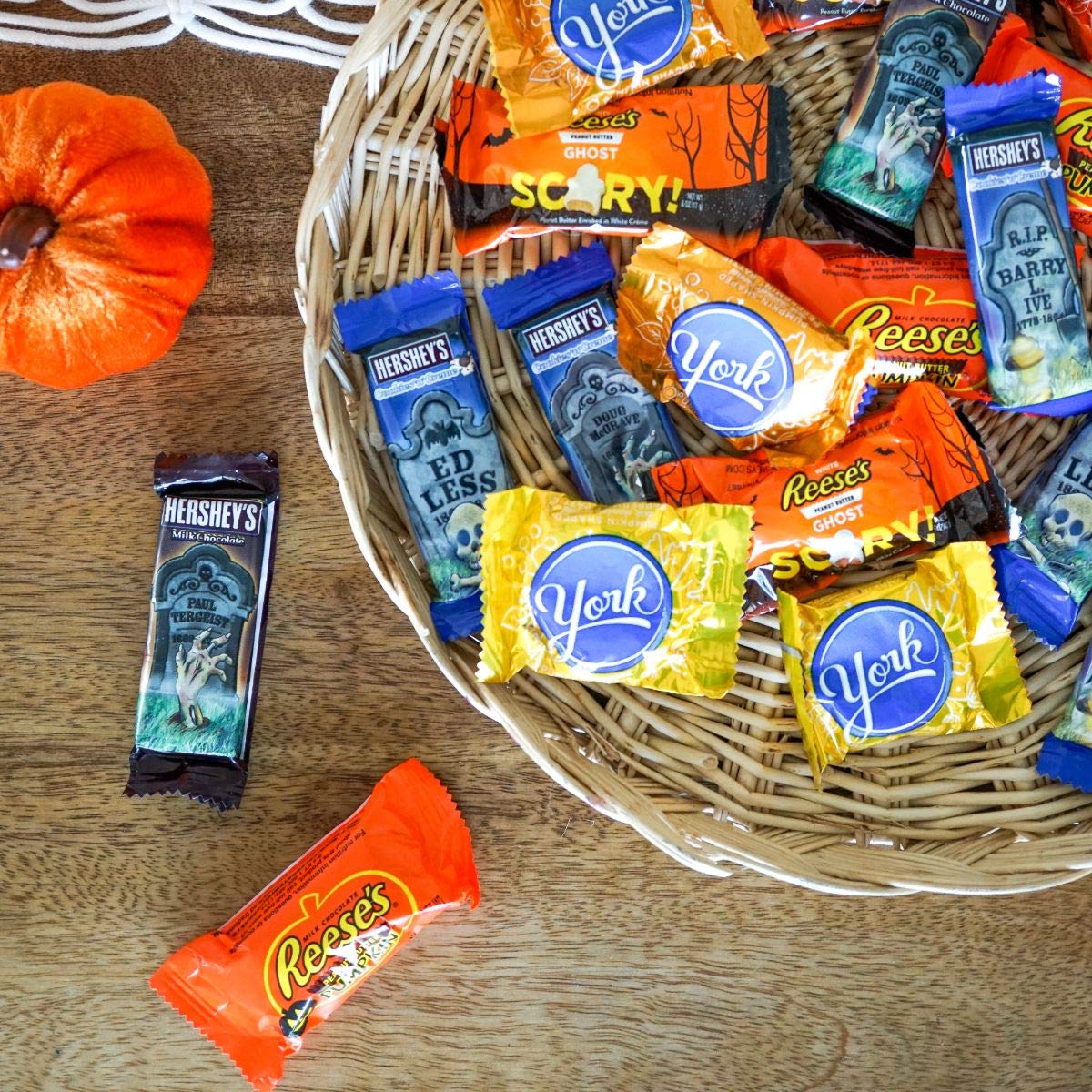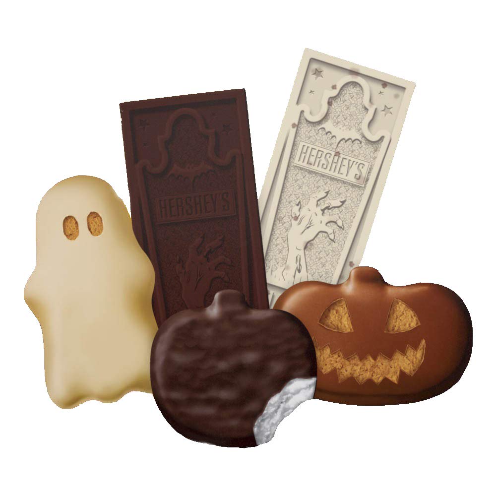 - Includes REESE's Peanut Butter Pumpkins, HERSHEY'S Cookies 'n' Crème Tombstones, REESE'S White Peanut Butter Ghosts, HERSHEY'S Milk Chocolate Tombstones, and YORK Peppermint Patties Pumpkins