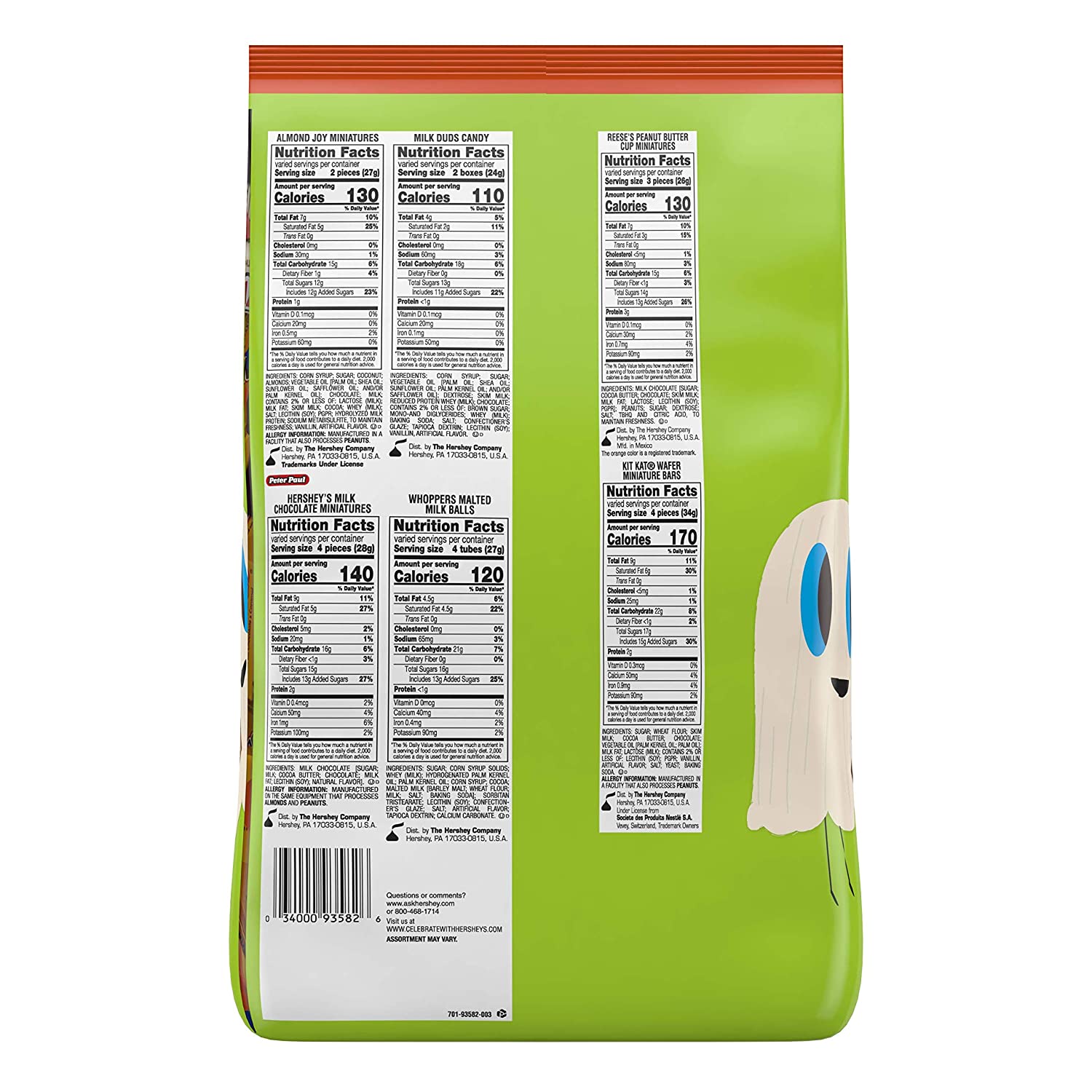 - Includes HERSHEY'S Milk Chocolate Miniatures, REESE'S Miniatures, KIT KAT Miniatures, milk DUDS candy, WHOPPERS malted Milk Balls, and almond JOY Miniatures