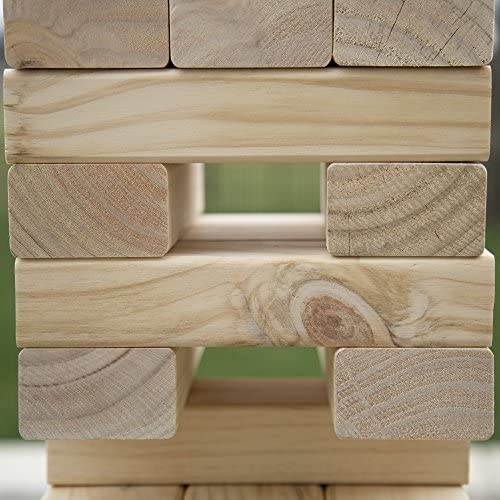 • TRULY A JUMBO WOODEN BLOCK STACKING GAME – Due to the unique size of the wood blocks, 9”x3”x1.175”, this game is truly a jumbo stacking game compared to some other stacking games.  The game can stack to over four feet tall, so lots of fun can come tumbling down!