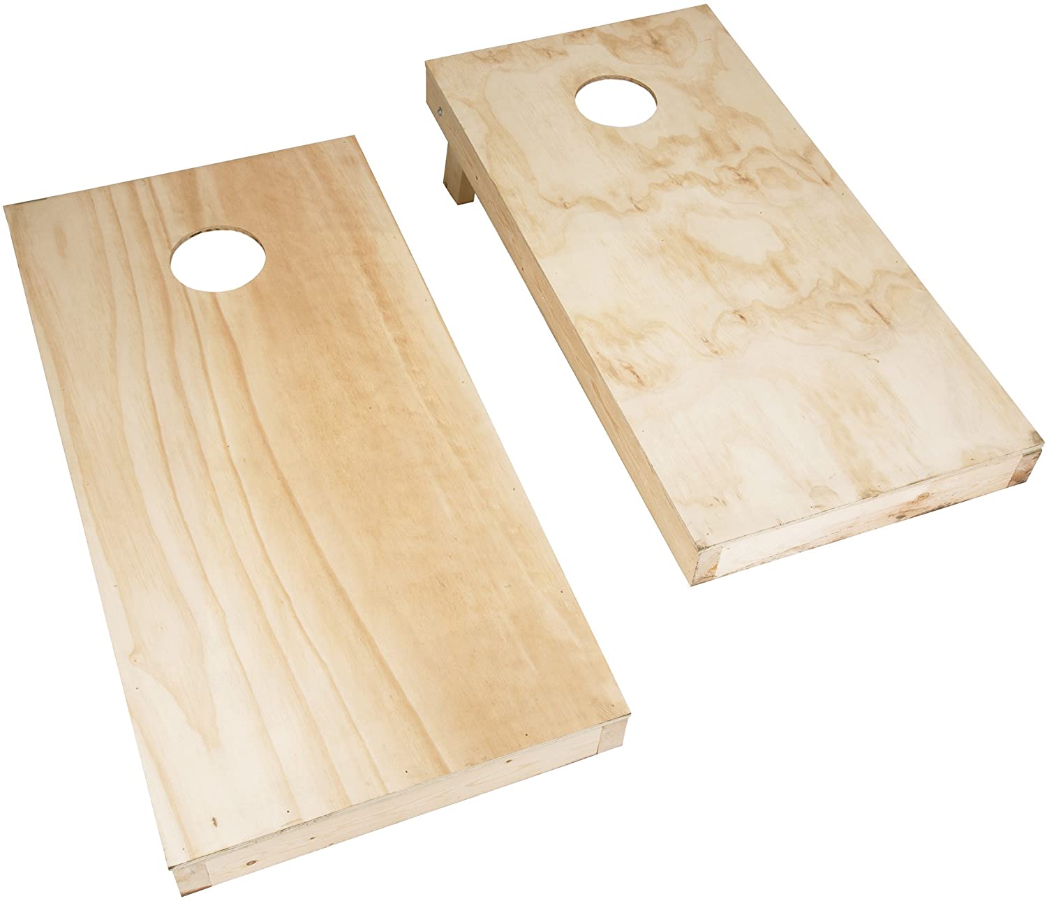 The Do-It-Yourself Regulation Size Cornhole Boards and Bags set is perfect for the cornhole fan who wants to enjoy a quality constructed game without having to actually do the construction. Made in the U.S.A, these unfinished boards are hand-crafted out of high grade 2"x4" frames, and 1/2" thick Radiata Pine plywood tops with a sanded face. A 2"x4" crossbar on the back provides extra durability, and angled-cut legs easily fold under the boards to allow for convenient storage. This fully-assembled set meets ACA Regulations and includes 8 bean bags in two different colors (colors vary by set). With boards that are perfect for painting, the set also includes suggested instructions on how to sand, paint and seal the wood.