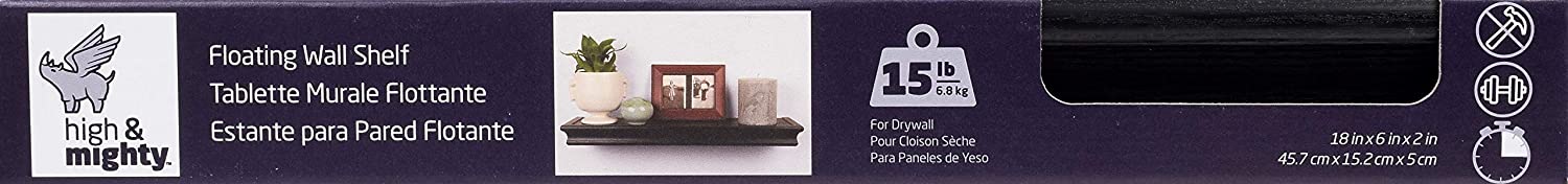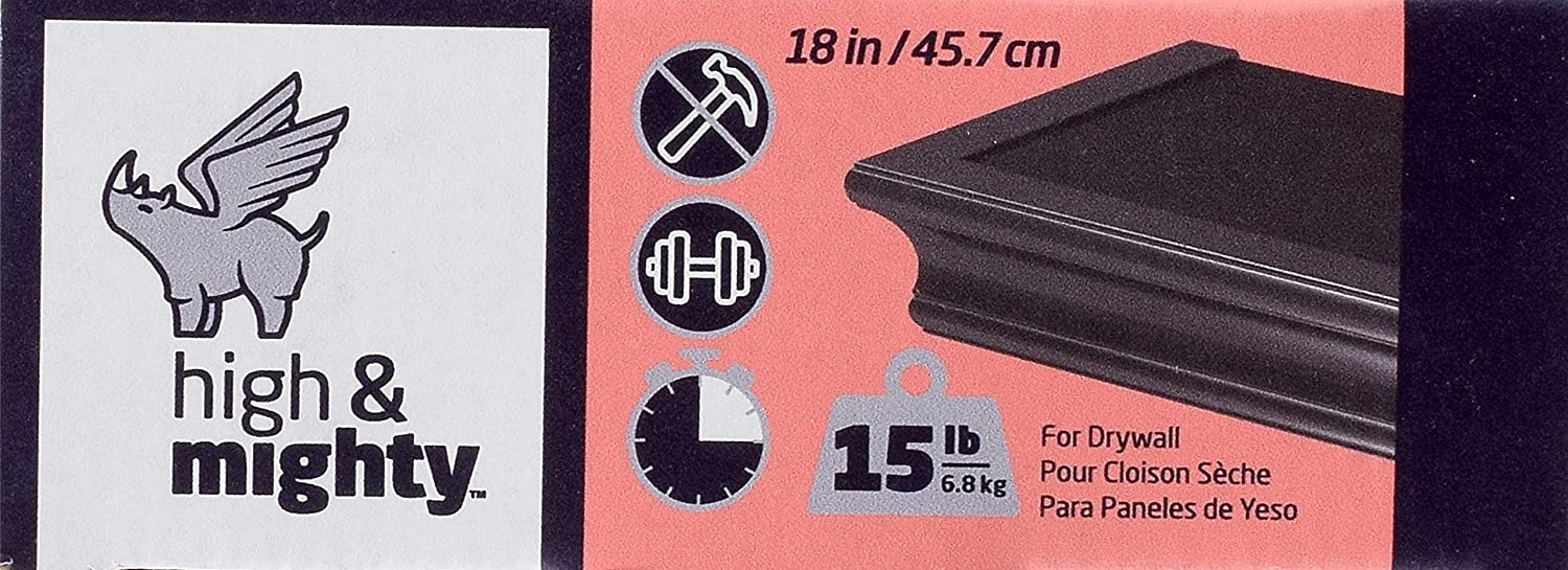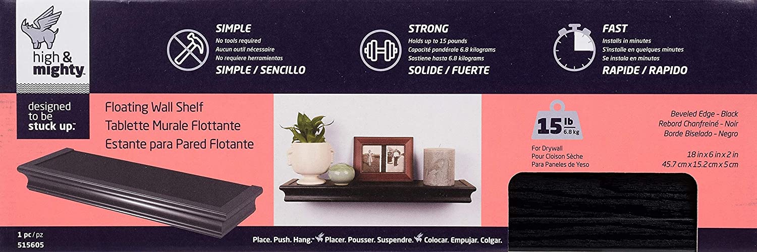 High & Mighty 515605 Floating Shelf, Beveled Design, 18", Black