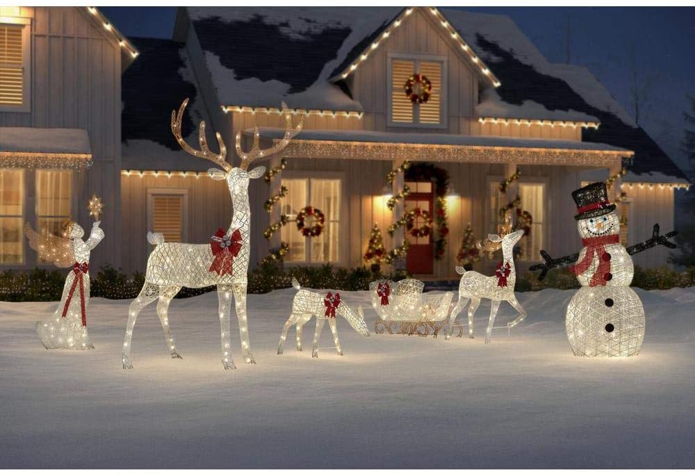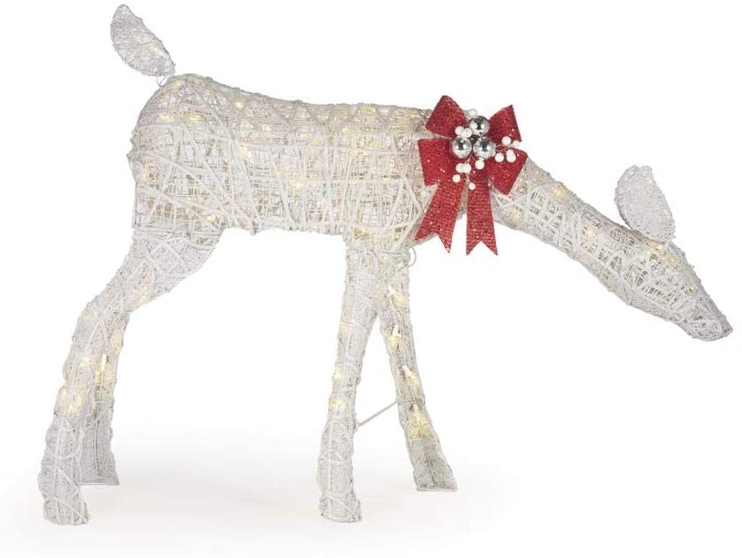 Add an adorable touch to your holiday decor with this 33 in. White Doe from Home Accents Holiday. Wrapped in 80 warm white LED lights, the energy-efficient bulbs save energy and money versus traditional bulbs. The PVC-covered, durable metal frame ensures this decoration will delight visitors for seasons to come. Rated for indoor and outdoor use.