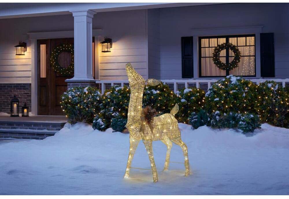 Add an adorable touch to your holiday decor with this Deer and Collar from Home Accents Holiday. Wrapped in warm white LED lights, the energy-efficient bulbs save money versus traditional bulbs. The weather-resistant fabric and durable metal frame ensures it will delight visitors for seasons to come. This decoration is easy to assemble and rated for indoor and outdoor use.