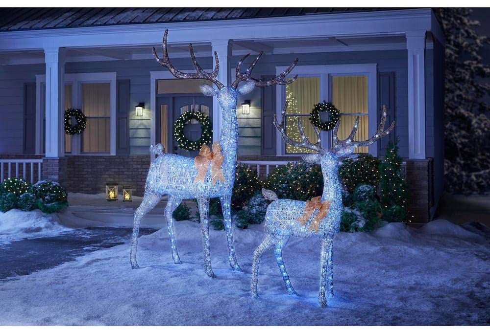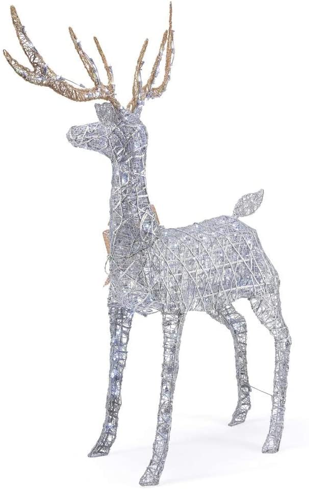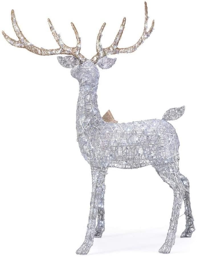 - Silver deer Christmas yard decoration adds warm glow to scene