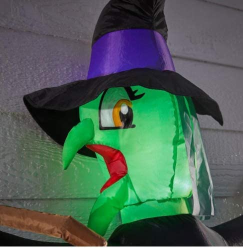 Entertain your guests with this hilarious 5 ft. Crashing Witch with Spell Book. A wayward witch finds herself on the ground after crash landing. Display this cute Halloween decoration as a standalone or combine it with other air blown Inflatables to create a custom scene. Illuminated with bright, energy-efficient LEDs for a spectacular display, it's also perfect as an indoor Halloween decoration for parties and celebrations. Includes everything needed for easy outdoor setup. Just plug it in, stake it down and watch the magic unfold.