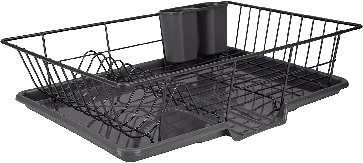 HOME BASICS 3PC DISH DRAINER SET BLACK