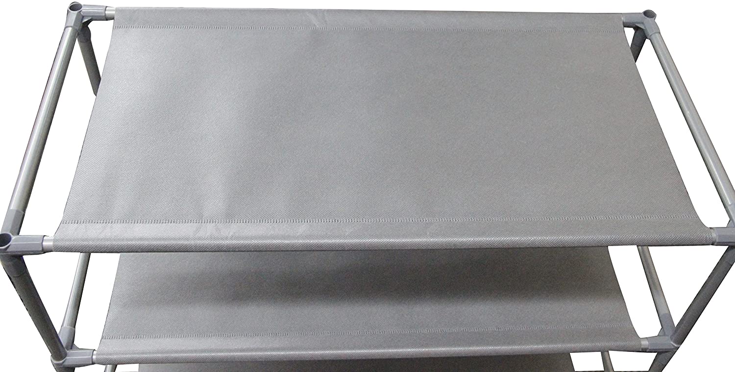 The 10-Tier shoe rack provide big space to contain your shoes. It will fit into any bedroom or dressing room and give you a clean and comfortable life space. Features: - the 10 roomy, nonslip shelves can hold dress shoes, gym shoes, Boots and more. - special fabrics has the function of waterproof, easy to wash. - the shoe rack is lightweight and easy to move. Specification: - color: grey - product size: 24.5 inch x 12 inch x 59 inch (height between layers: 6.7 inch (17 cm) - material: non-woven fabrics, plastic, metal - weight: 4.8 KG (10.6 lbs.) shipping list: - 1 x shoe rack - 1 x instruction note: before assembly, you can put the connectors in warm water for some minutes (especially in some cold areas) to increase their flexibility. Times and times disassembling is not recommended as it may cause the connectors broken in the process.