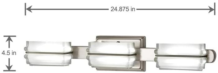 Upgrade your bath lighting with energy saving LED technology. Clean simple lines with transitional/contemporary style that will complement a variety of decor styles. This Energy Saving LED vanity bath fixture is maintenance free using integrated LED modules. Home Decorators Collection is a perfect LED choice for your bath area.High efficiency LED fixture consumes less energy than traditional bulbs saving you moneyDurable metal construction is built for long product lifeLED bulbs are low energy consuming saving you moneyEtched glass creates diffused effect when illuminateLED light source produces 3,000K (bright white) light at 1154 Lumens using (3) 8-WattDesign is ideal for above the bath vanityIncludes assembly and installation partsETL listed for damp location