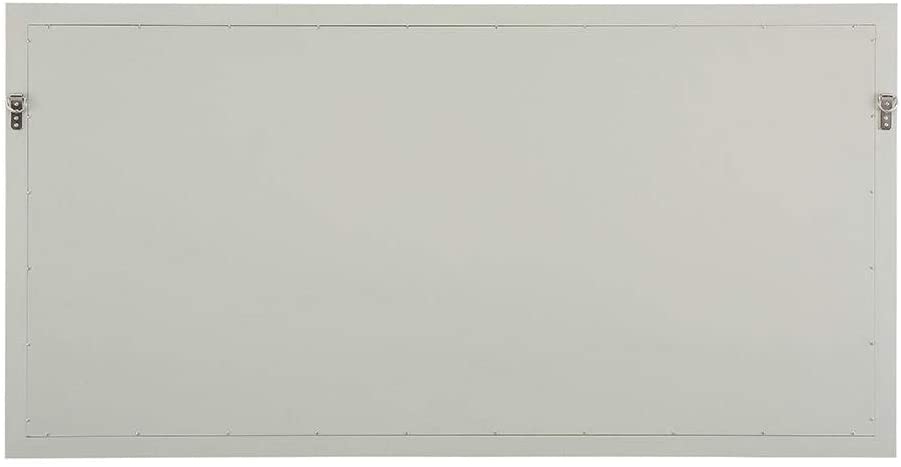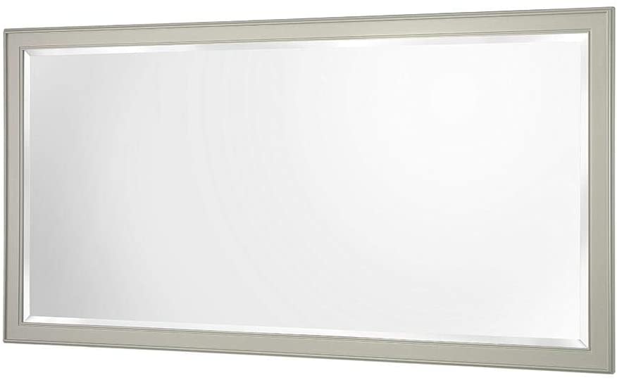 Finished in grey, the Gazette mirror features a beveled edged design framed with sturdy poplar. Clean lines and oversized dimensions will bring a distinctively dramatic and contemporary feel to the bathroom. This rectangular mirror is designed to mount horizontally, with brass mounting hardware conveniently attached for quick and easy hanging.