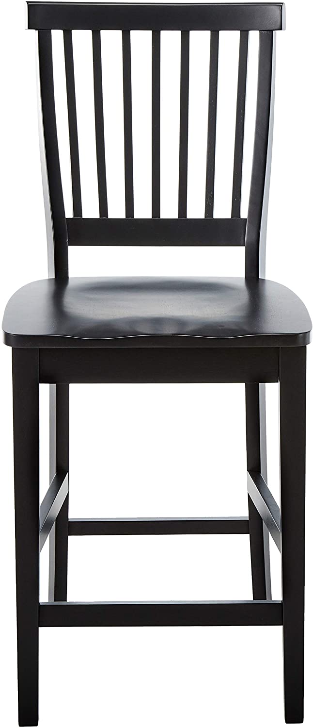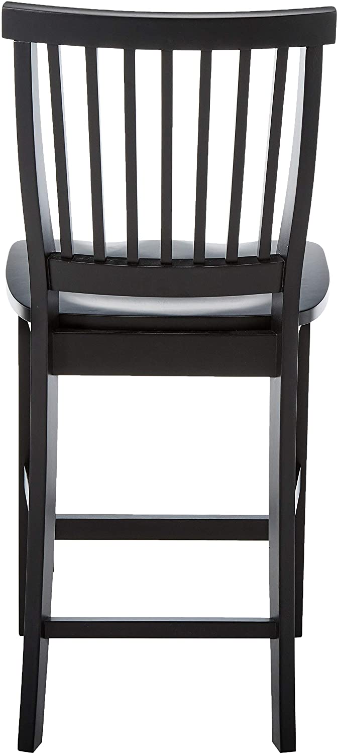 The arts and crafts bistro stool is made of sustainable Asian hardwood. Comes with black finish. Classic arts and crafts styling with an ebony finish that easily coordinates with many decorating schemes. A contoured seat and high back are featured for comfort. Clear coat finish to help protect against wear and tear from normal use. Easy assembly. Seat Measures 24-inch in height. Measures 17-3/4-inch width by 22-1/4-inch depth by 40-1/2-inch height.