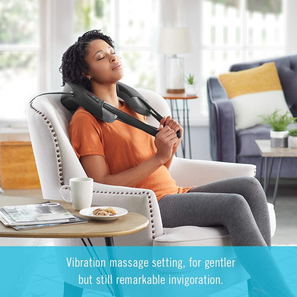 - INVIGORATING VIBRATION: The vibrating massage feature immediately invigorates and melts away pain and tension in the back of your head and neck