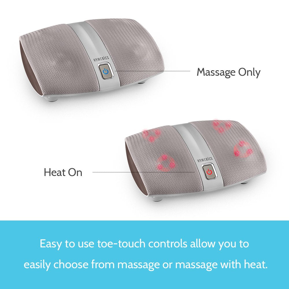 OurHeated Foot Massagerfeatures an easy to use toe-touch control. You don't even have to bend over to adjust the settings. Give your feet the rest they deserve - from the comfort of your own home or office. This heated massager is portable and discrete enough to keep under your office desk, get a heated foot massage while you work!
