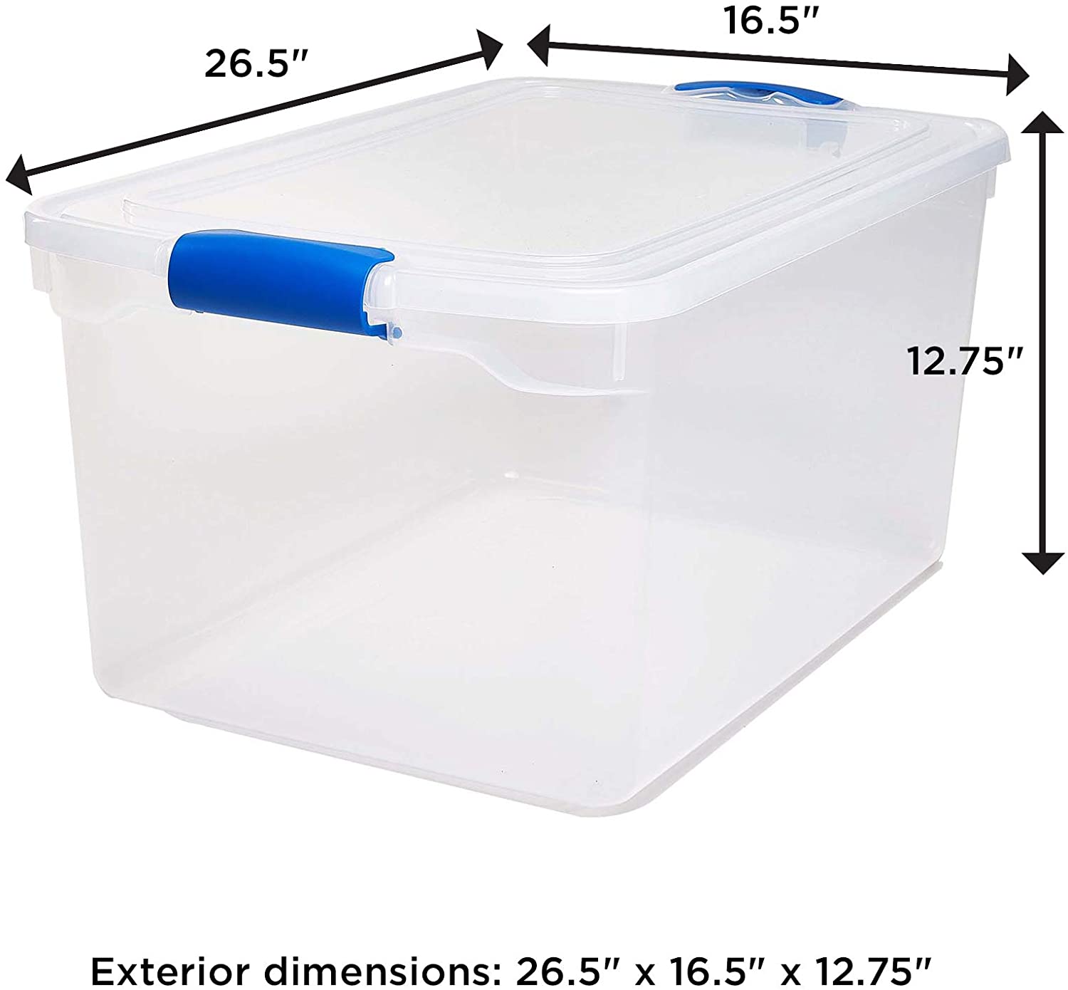 - Large- 66 quart storage capacity ideal for storing shoes, clothes, seasonal holiday decorations, personal items and more