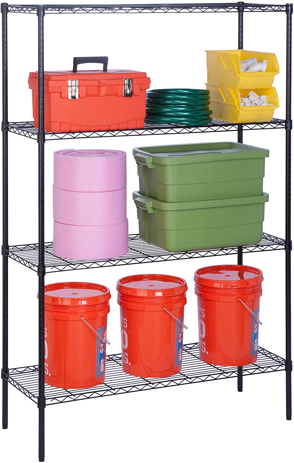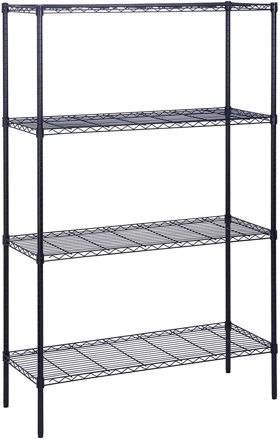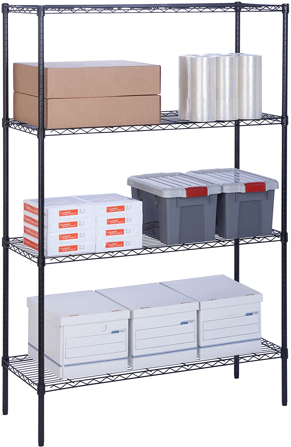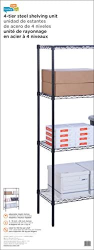 Honey-Can-Do SHF-05225 4-Tier steel wire shelf with 350-pound Capacity, black, 18L x 48W x 72H. Create visible, accessible storage space instantly with Honey-Can-Do industrial shelving systems. Contemporary black finish and steel frame make this unit the perfect blend of style and functionality. Durable enough for the home, garage, pantry, or commercial kitchen. This commercial grade adjustable shelving is capable of withstanding up to 350lbs per shelf. Measures 18 in L x 48 in W x 72 in H 45 7. Cm L x 121.9 cm W x 182.9 cm H. Adjustable shelves allow you to change the configuration as your storage needs evolve. Combine multiple units to create a customized storage wall. The no-tools assembly allows you to construct in minutes a shelving unit that will last for years.
