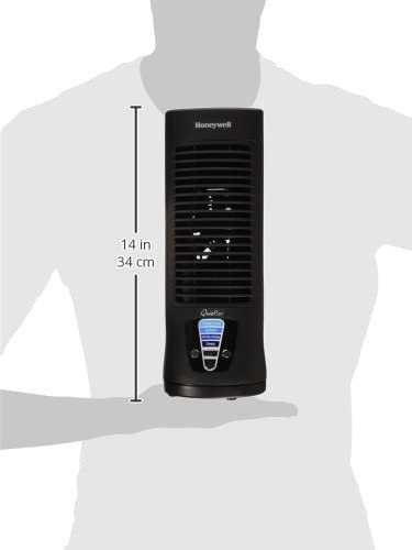 The Honeywell QuietSet Mini Tower Table Fan is a slim and compact model that's ideal for cooling small areas of personal space. The aspects of comfort and convenience can be observed with the inclusion of Advanced QuietSet Control that allows owners to personalize sound and cooling power. An easy touch display and 2 8 hour auto off timer have also been incorporated for increased ease of use. This table fan also carries the additional bonus of saving you up to 50 percent energy as opposed to AC motors. The slim design of the Honeywell QuietSet Mini Tower Table Fan makes it a natural addition for desktops, nightstands and other areas of personal space.