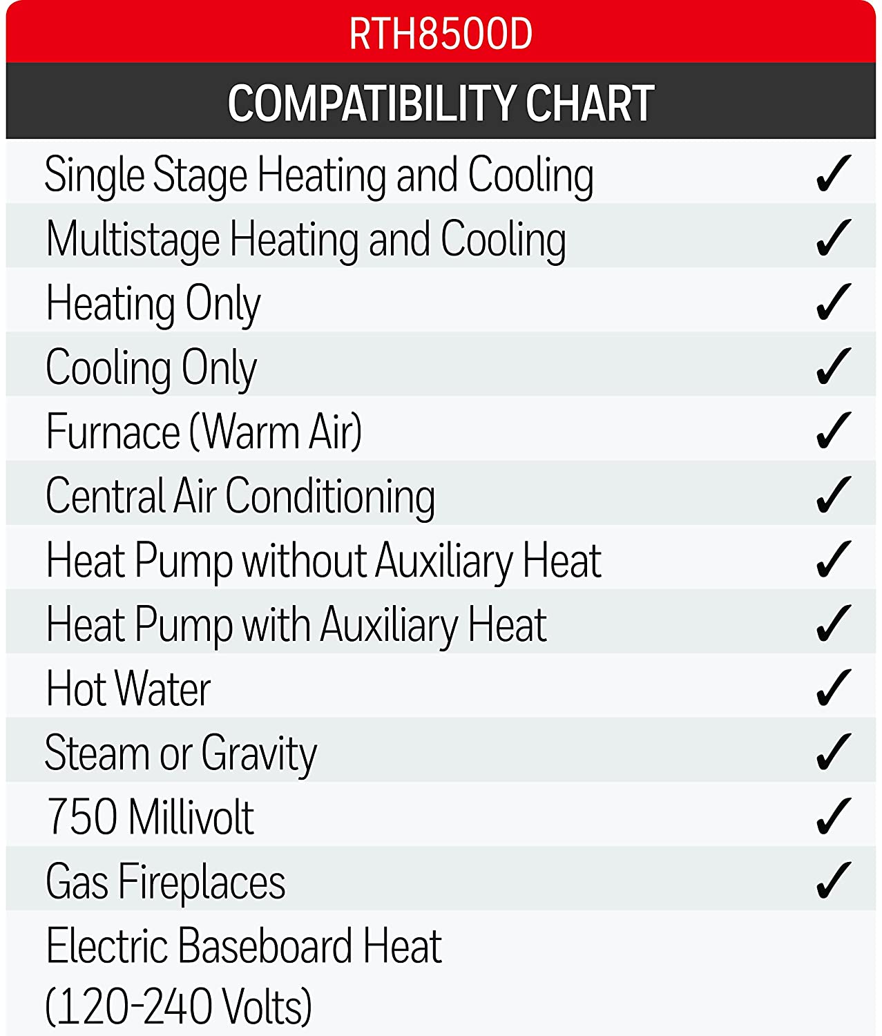• Universal Application - works with conventional and heat pump systems up to 2H/2C, it's one thermostat for nearly every application