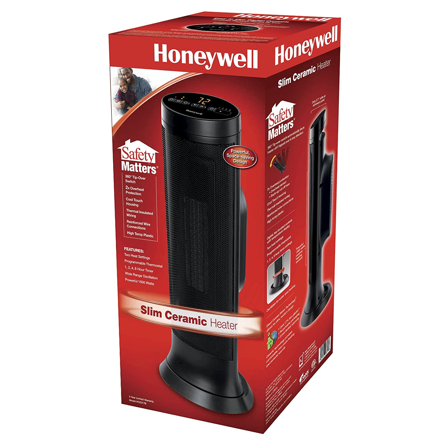 This new ceramic heater features 2 heat settings - high output 1500 watts, and 750 watts on low - and a programmable thermostat and timer function, all designed to give you control of your comfort. Additionally, this heater offers added protection as it is equipped with multiple safety features such as 2x overheat protection, cool touch housing, high Temp Plastics and reinforced wiring and connections. The slim, 22 inch Tower design, wide-range oscillation and powerful 1500 watt maximum heat output offers quick, comforting heat for a variety of spaces and is ideal for medium or larger rooms like living rooms, family rooms and bedrooms.