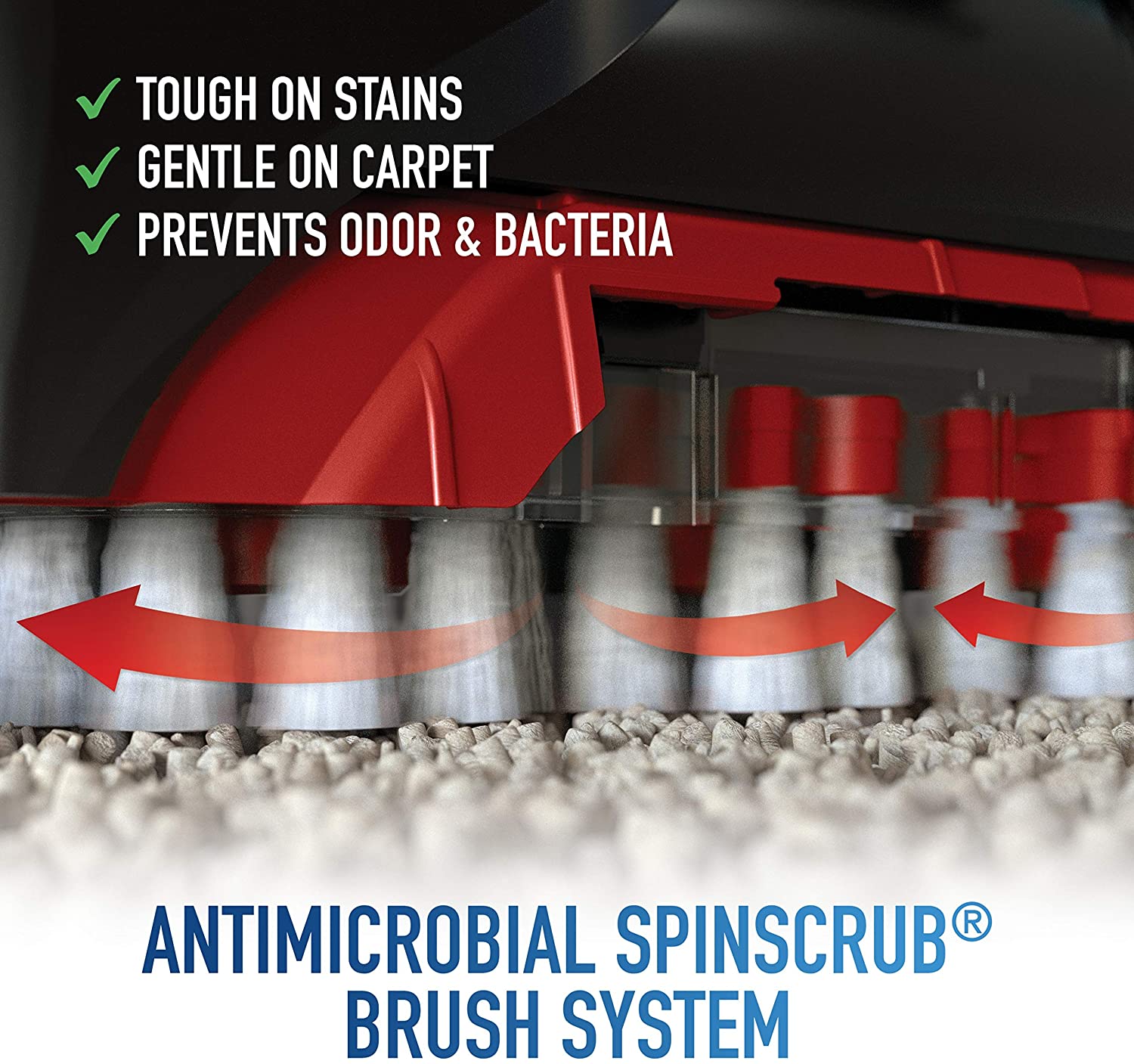 • SPIN SCRUB SYSTEM: Powerfully removes deep-embedded dirt and stains with 360 degree brushes and strong suction while being gentle on your carpet.