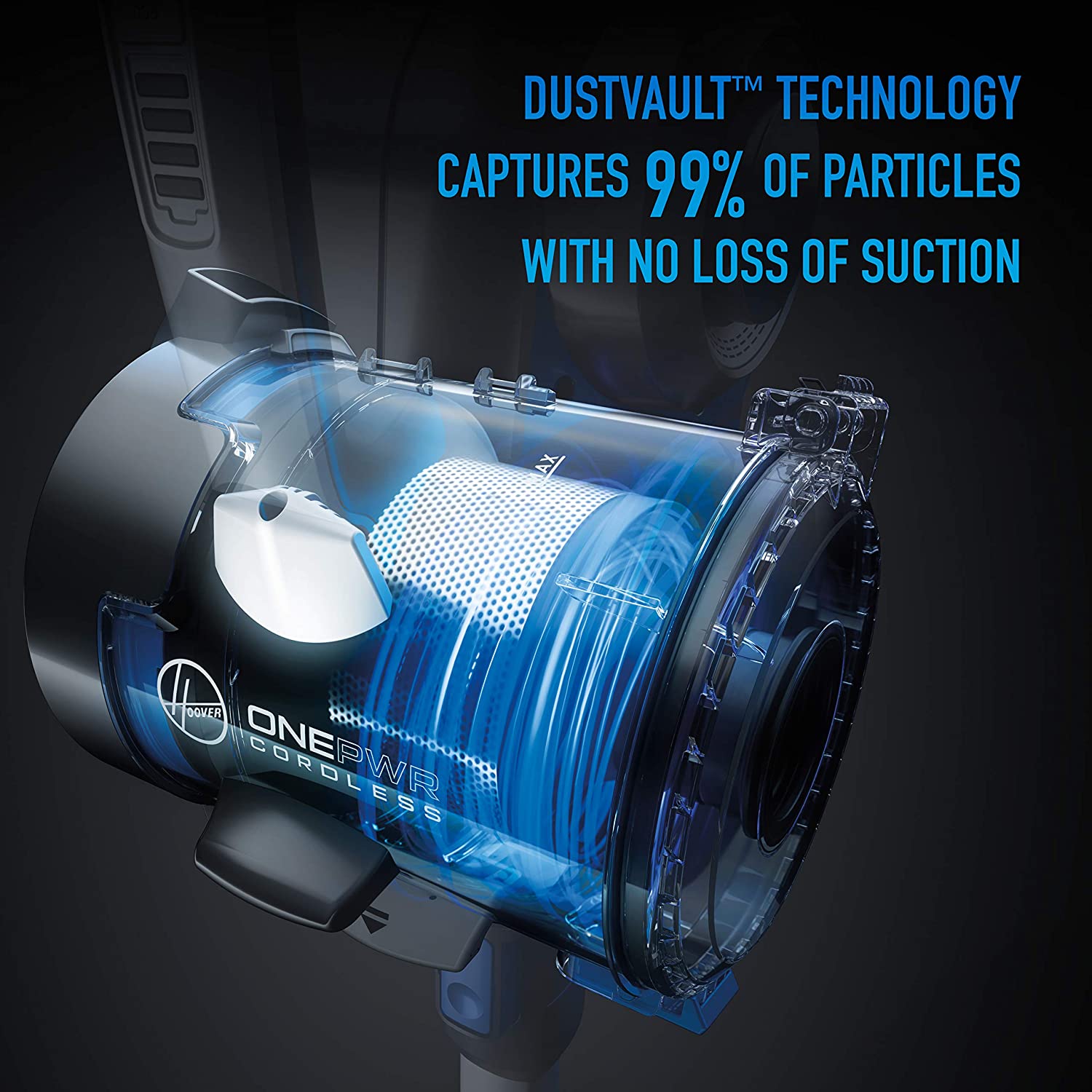 - Featuring dual cyclonic DustVault Technology; Captures 99% of dust and fine particles1 with No Loss of Suction2 for continuous cleaning3