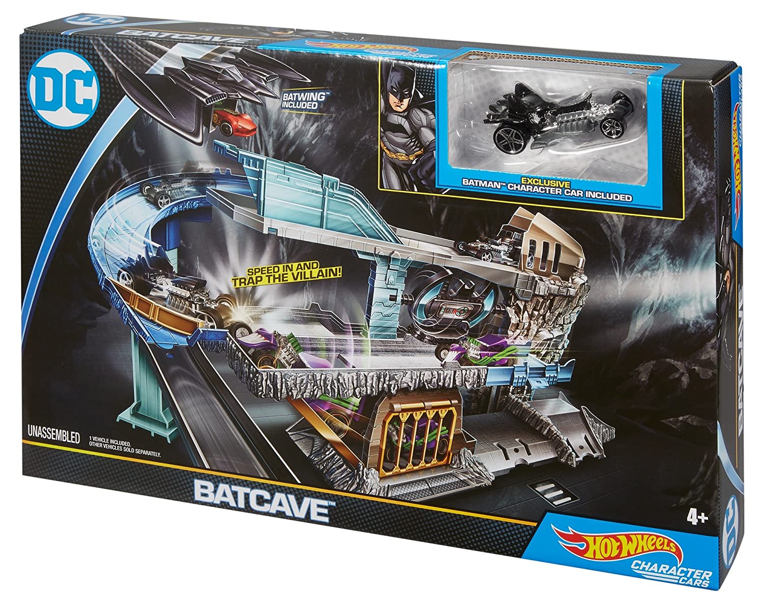 • The Batcave set includes a premium Batman Hot Rod Character Car, Batjet, Batcomputer, 2 elevators, a jail and storage for vehicles plus stickers