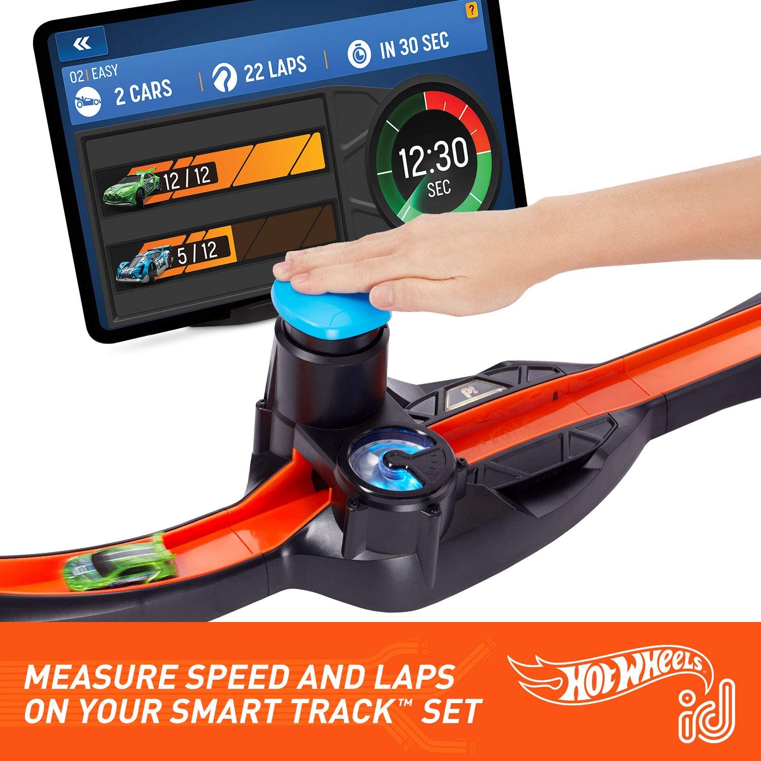 - The smartest Hot Wheels track set ever with 2 exclusive Hot Wheels id cars and 16 track pieces, connectors, curves, straights, ramps, finish line, booster and an insane loop.
