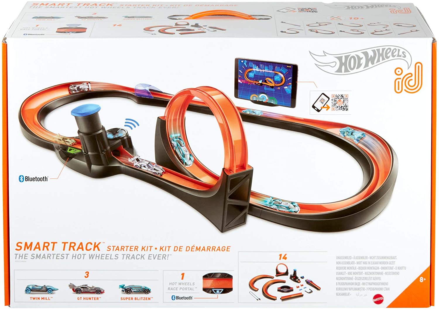 Hot Wheels id is the premium, next-level Hot Wheels system of play. Its sleek, cutting-edge design blends the exhilaration of Hot Wheels racing with a safe, connected platform of creativity, experimentation and competition. The more kids play with the physical car, the more they level up in the video game, challenging them to break records they make on the Smart Track. The Smart Track Starter Kit features 3 exclusive Hot Wheels id die-cast cars, assorted premium, connected track pieces and the Hot Wheels Race Portal. Measure and record speed, laps and performance on tracks -gamifying physical experiences through digital play. Kids can measure insanely fast performance with the powerful kid-powered booster that launches cars at speeds of up to 900-mph (scale speed) -scan Hot Wheels id cars and play mini-games on classic Hot Wheels track through the app! Track progress -every mile driven, race won, stunt performed and high speed reached is recorded. With every milestone conquered, kids' racing prowess is boosted. Connect safely and play endlessly. Unlocks Hot Wheels id on both smart phones and tablets. The Hot Wheels id Smart Track Starter Kit makes a great gift for kids 8 years and up. Additional vehicles sold separately.