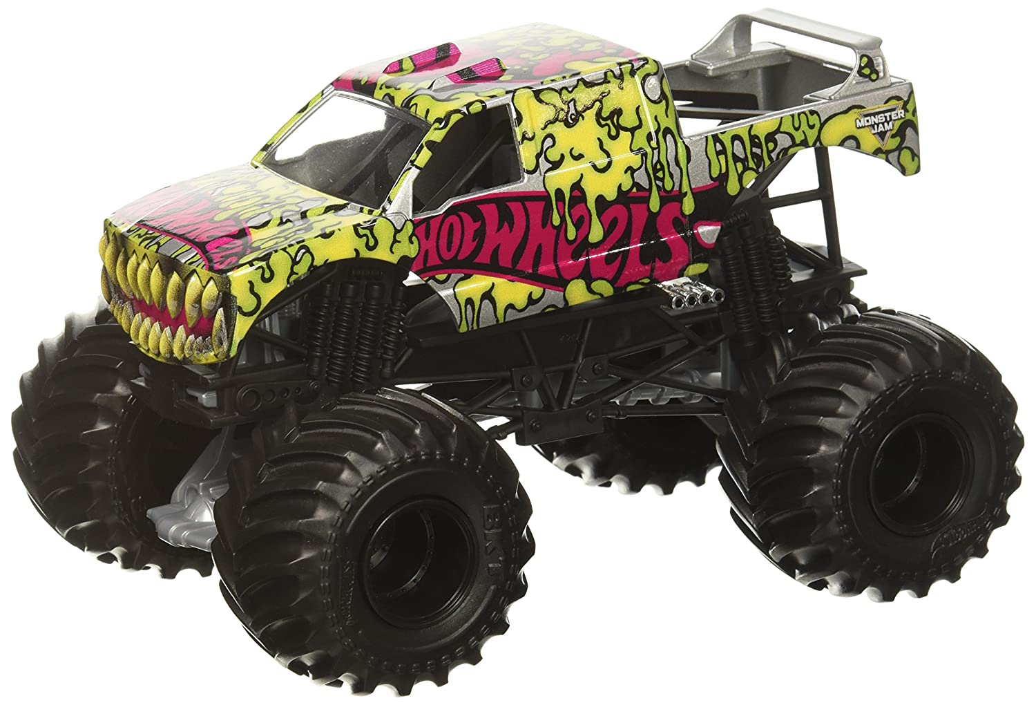 With even more accurate designs, these 1:24 scale trucks are made with durable die-cast metal parts and decorated just like their high-flying, car-crushing, oversized inspirations. Their monster wheels are ready for mega tough terrains, too! Pick up all of the vehicles in the assortment and head to the Monster Jam arena for head-to-head battle! Who will dominate and who will be destroyed? Not for use with some Hot Wheels sets. Each sold separately, subject to availability. Colors and decorations may vary.