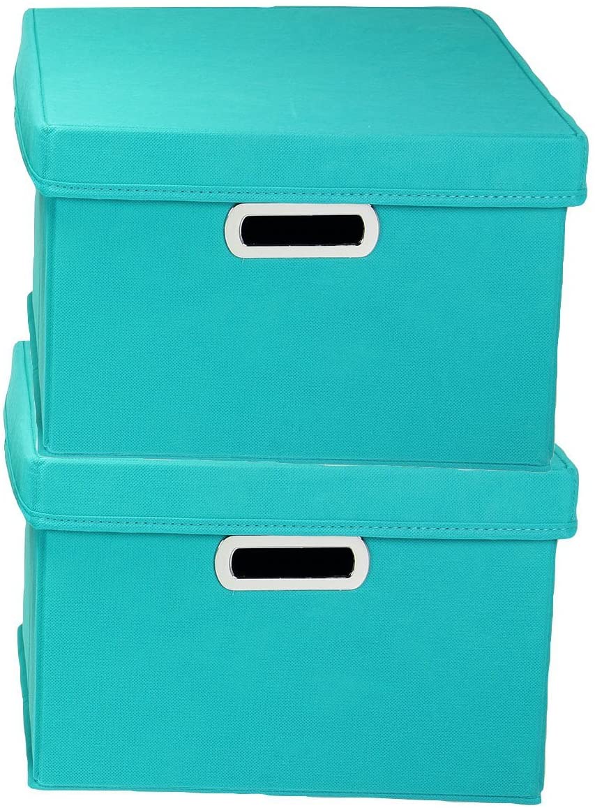 - 2 piece Collapsible Storage Box Set with removable lid for easy storage and organization