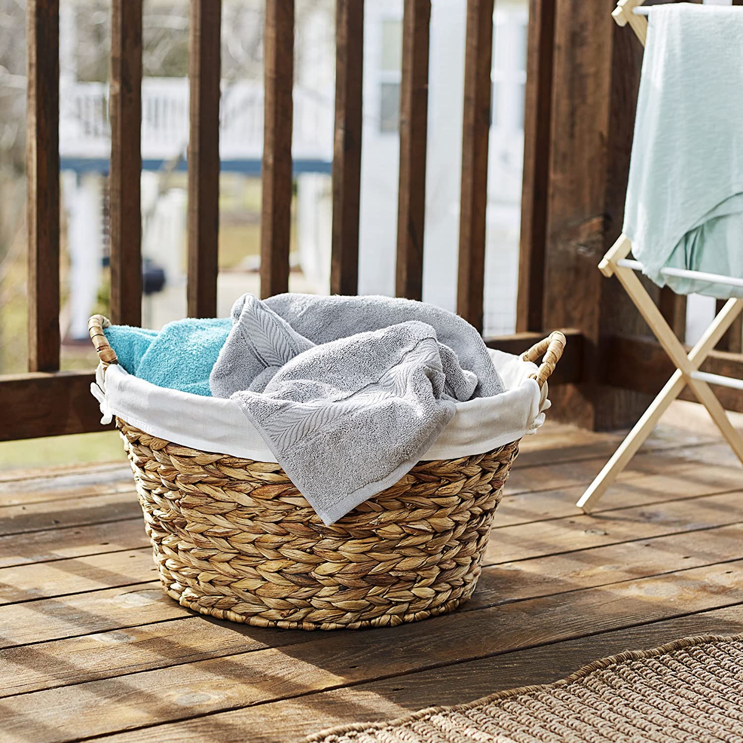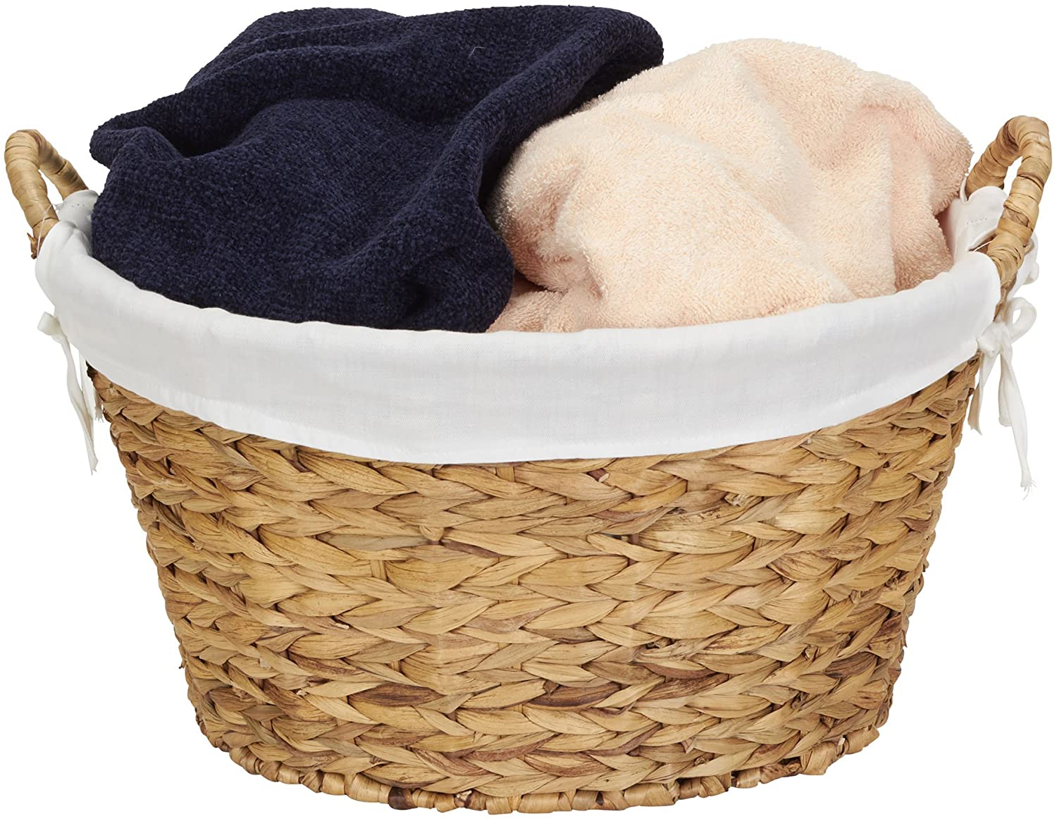 - Large round wicker laundry hamper bin with removable liner for bedrooms, bathrooms and closets