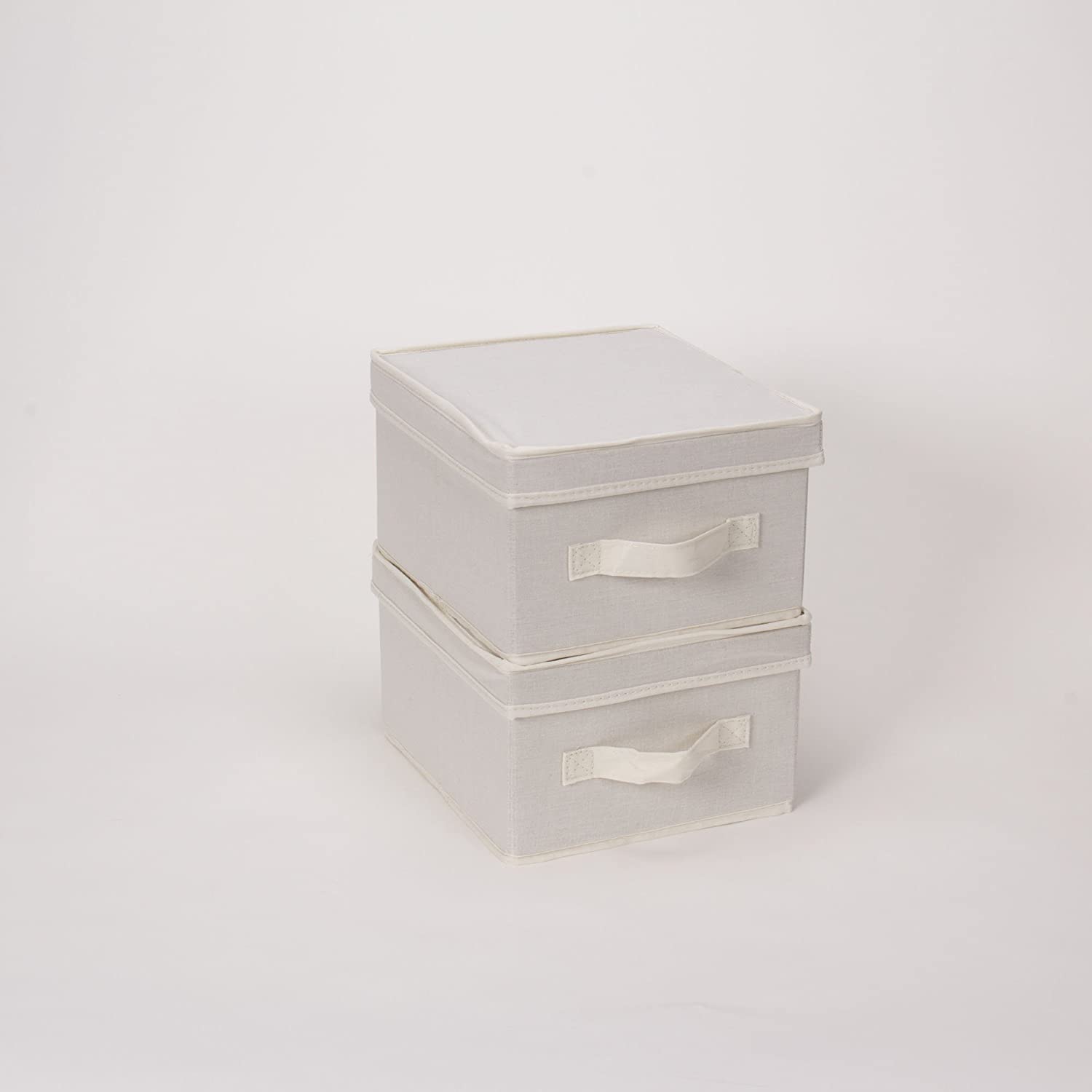 Tuck away clutter, linens, and more with these lidded storage boxes. With the convenient handle and sturdy sides, these lidded boxes are sturdy enough to stack, so you get the most use of every space. The medium box provides a protected place for bulky and oddly shaped items, so nothing is crammed in a closet unprotected. The smooth, durable canvas suits any décor and keeps your things stashed safely and neatly. Whether housing seasonal decorations or something else altogether, this convenient storage box will quickly become one of your favorite pieces. Use it home or in the dorm and keep your things clean, tidy, and easily within reach. Item #111