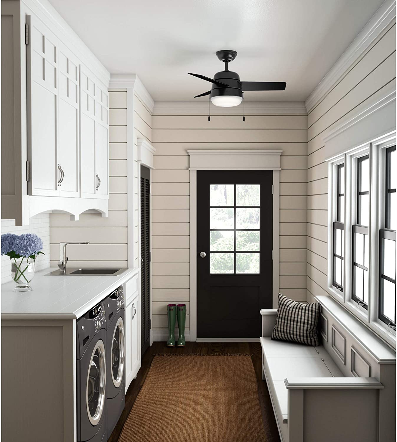 The Scandinavian style lighting complemented by a mid-century color palette along with the rounded edges throughout the aker gives it a soft modern look. With a 36-inch blade span, this petite Fan is perfect for Small spaces like home offices, hallways and even bathrooms. But don’t let its size fool you: this modern ceiling Fan packs a punch when it comes to airflow and keeping you cool.
