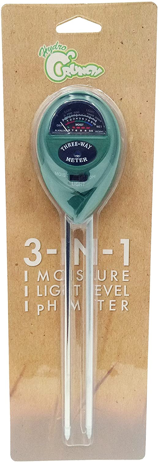 With Hydro Crunch 3-in-1 Soil Meter, you can easily check on the condition of your plants. The moisture meter will quickly tell whether your plants is doing well. Firstly, let you know that dry and needs water or wet and could use a day to dry out, you will never over/under water your plants again. Secondly, it helps you to control PH level in soil, acidic or alkaline is suitable for your plants. Thirdly, testing whether plants getting adequate sunlight. Above all, equipped with this meter, you can give best care to your plants and keep the soil and lawn healthy and happy. Note: Please remove probes from soil and wipe clean after each use.