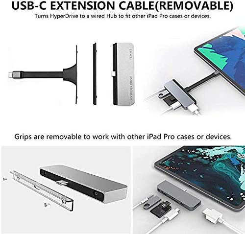 - [Worldwide Patent Pending] Features a removable and replaceable grip that secures USB-C hub onto iPad Pro. Optional grips and extension cables support iPad Pro with screen protectors, cases and other USB-C devices.