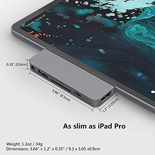 - [Best Selling iPad Pro 2020 2019 2018 USB-C Hub] World's most crowdfunded iPad Pro accessory and USB type C hub. Turns a single USB-C port into 6 ports on the iPad Pro 2020/ 2019/ 2018. (3.5mm Audio Jack, USB-A, SD, Micro SD, USB-C, HDMI)