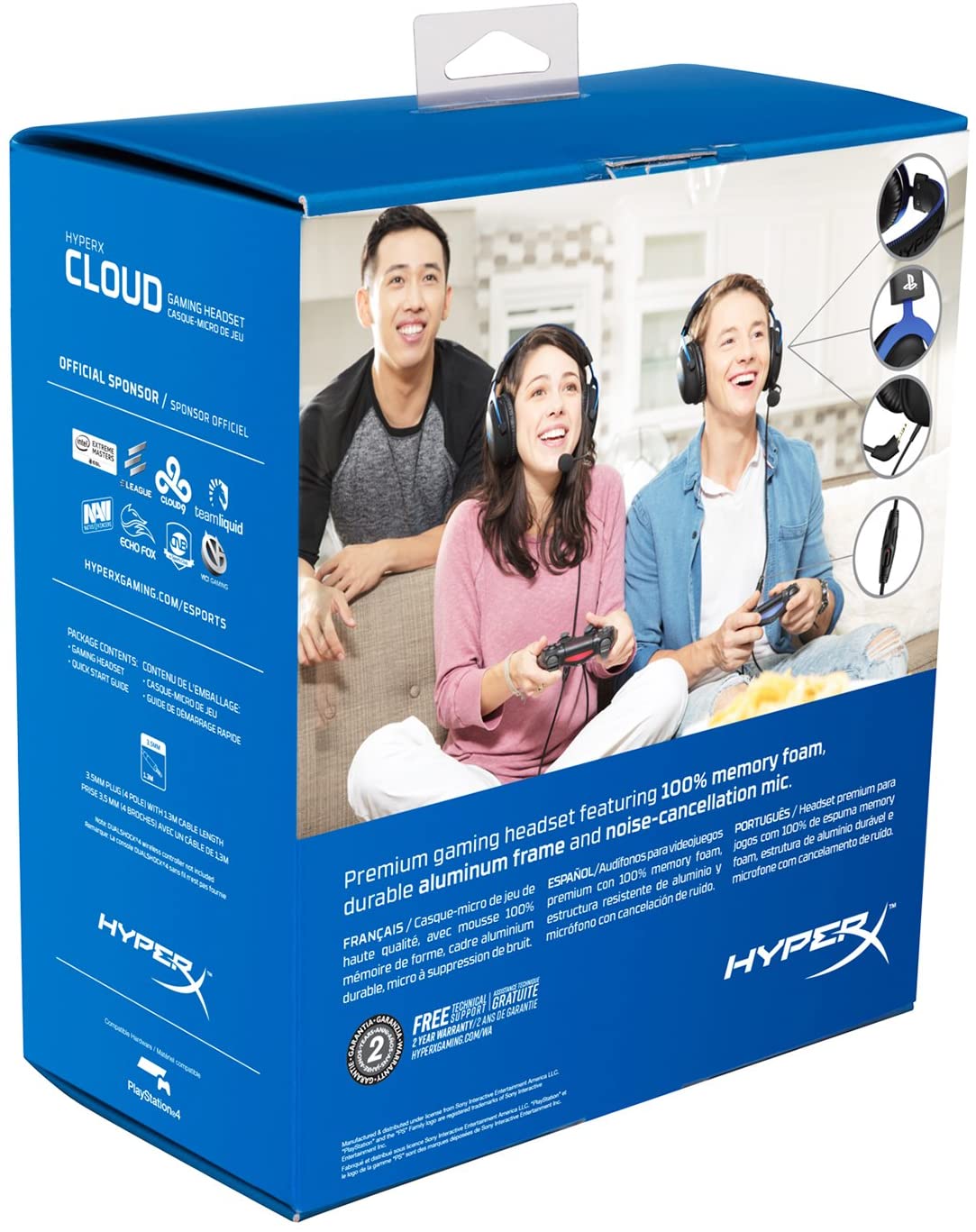 TheHyperX Cloud PlayStation Official gaming headsetfeatures in-line audio control, adetachable noise cancelling microphone, comfortable memory foam, and immersive in-game audio. The in-line audio control makes it possible for gamers to quickly mute or change the volume of their headset by simply using the controls on the headset cable rather than going into console settings to adjust sound. The detachable noise cancelling microphone featured on the Cloud reduces background noise, creating an improved in-game chat experience while providing the convenience of easy removal to switch between gaming and listening to music. The HyperX’s signature memory foam provides comfort for long-lasting, marathon style gaming sessions. The soft padded leatherette featured on both the headband and over-the-ear ear cushions provides not only comfort but better sound quality due to the closed cup design. The HyperX Cloud features immersive in-game audio with crystal clear lows, mids, and high tones. The Cloud is HiFi capable, features 53 mm Drivers, and provides an immersive gaming experience through its superior sound quality.