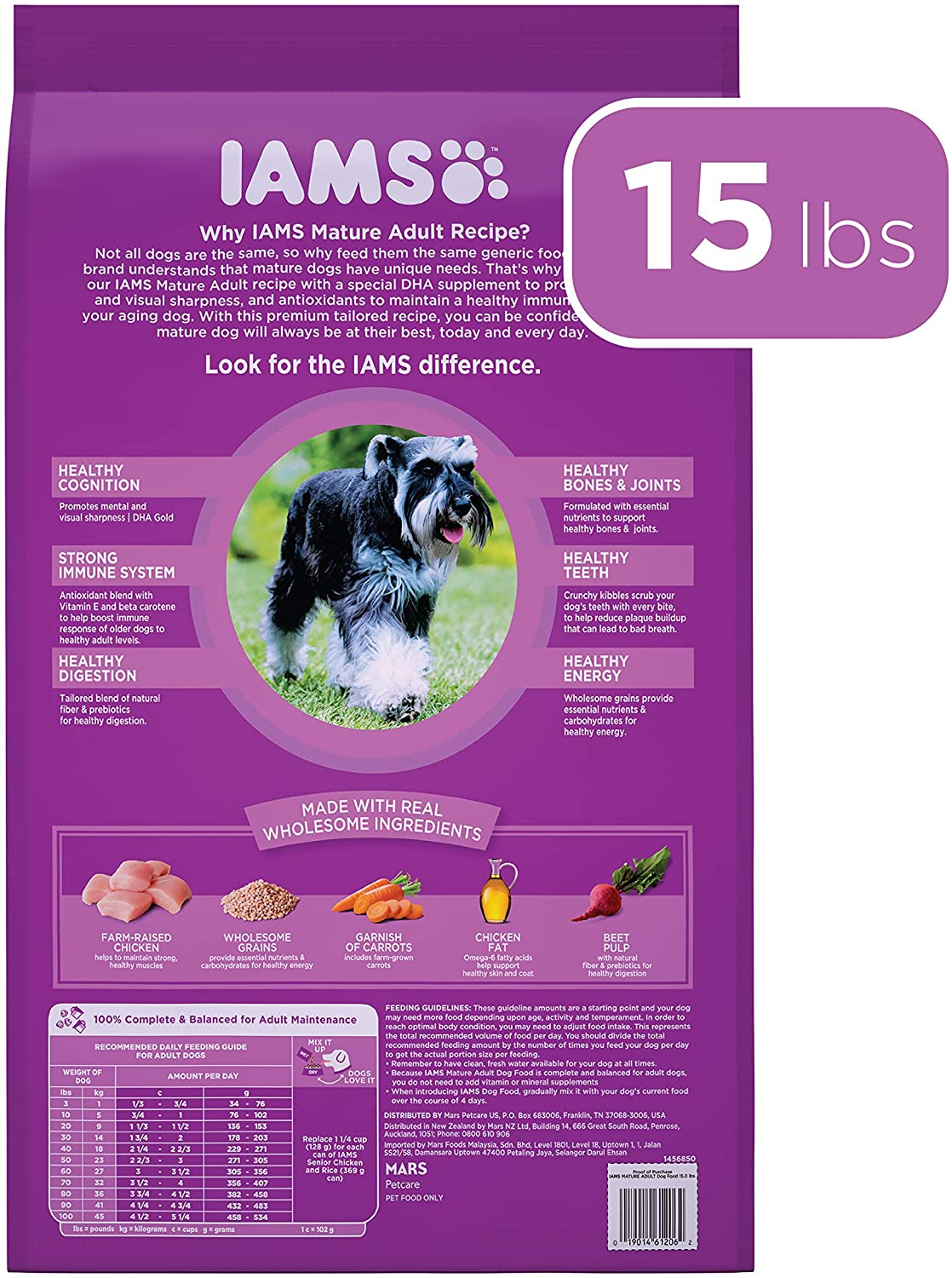 - Contains one (1) 15 lb. bag of IAMS Mature Adult Dry Dog Food with Real Chicken