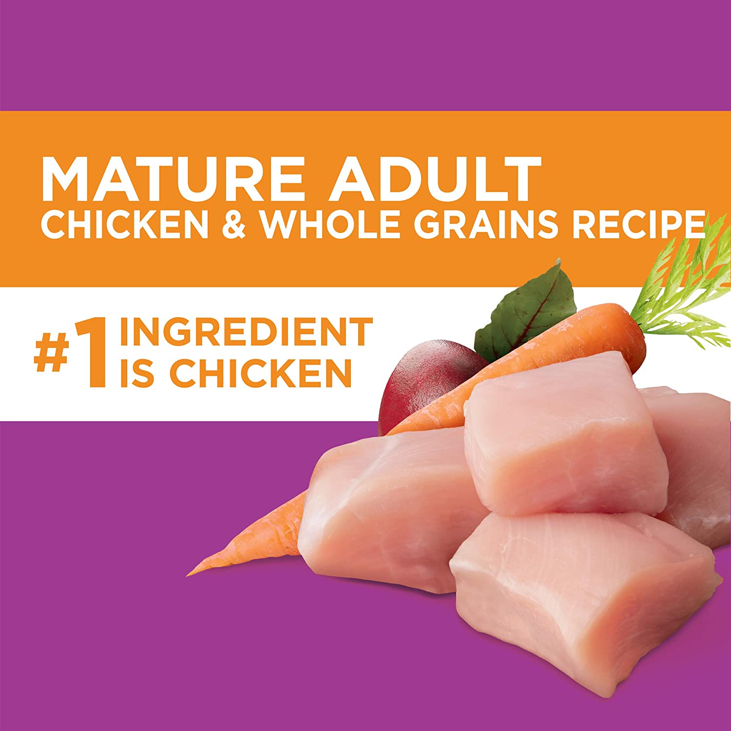 - Specially formulated mature dog food fits a senior dog’s specific wellness and nutritional needs