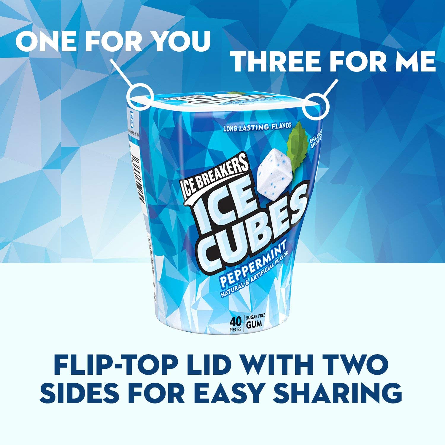 • Contains (4) 40-count bottles of ICE BREAKERS ICE CUBES Peppermint Sugar Free Chewing Gum