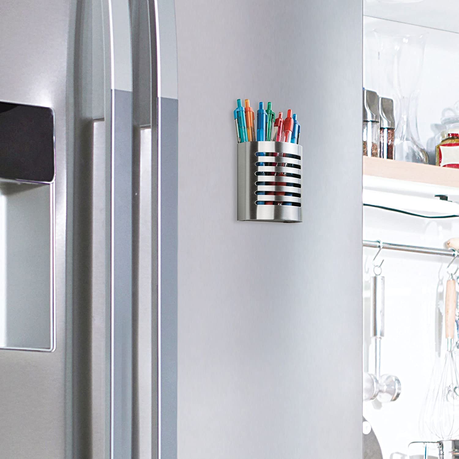 Stay organized with the iDesign Forma Magnetic Pen and Pencil Organizer! This stainless steel writing utensil organizer helps you keep office necessities close at hand. Magnetic backing allows you to place it on a refrigerator, locker, or any other magnetic surface. This sleek, modern piece complements any kitchen, office, or garage decor. Store paint brushes, highlighters, art supplies, note pads, and more! The iDesign Magnetic Memo Center measures 3.25"" x 1.75"" x 3.50"", a perfectly compact size for any space. With iDesign by InterDesign, you can #livesimply every day.