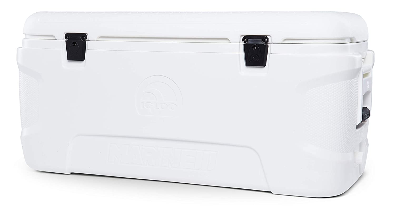 Get ready to cast your line and spend your time out on the water worry free with the Igloo 120 QT Marine Contour Cooler. The stainless steel screws are rust resistant and marine grade extended life hinges and latches ensure that no matter the humidity level, your cooler is ready to go. The Ultratherm insulation allows for ice to hold up for 5 days - so don't cut your trip short on behalf of your sandwiches. Once you reel in your catch of the day, toss it onto the integrated fish ruler on the lid to check its size and brag to your buddies. Once you are done, the threaded drain plug lets you hook up a hose for ultimate easy to drain performance.