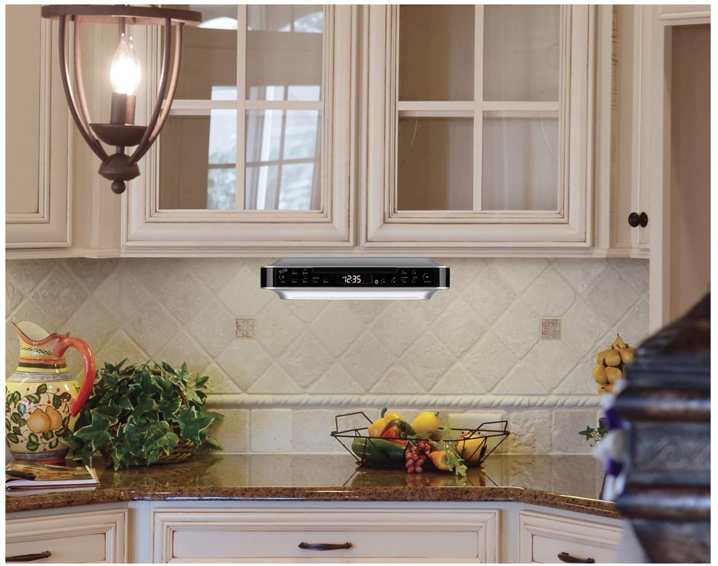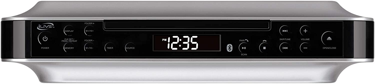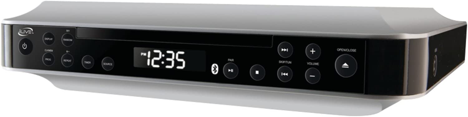The iLive Bluetooth Under the Cabinet Radio with CD Player lets you stream music from your device for unrivaled control of your listening experience. Enjoy your CD's and listen to music, news, weather, and traffic with the FM radio while you prepare for the day. Maximize your counter space with this radio that features a kitchen timer, LCD display, digital volume control, and a simple mounting kit for easy installation. A remote control is included for changing tracks, radio stations, or adjusting volume. The sleek design will complement any kitchen decor. AC/DC power adapter included. iLive products are specifically designed to enhance your digital devices including iPod, iPhone, iPad, Android, Blackberry, Mobile Phones, Tablets, Televisions, and Bluetooth Devices. Our focus is on delivering a great product that serves as an extension of a these devices, in both design and function, without compromising on audio quality, feature-set, or ease-of-use.
