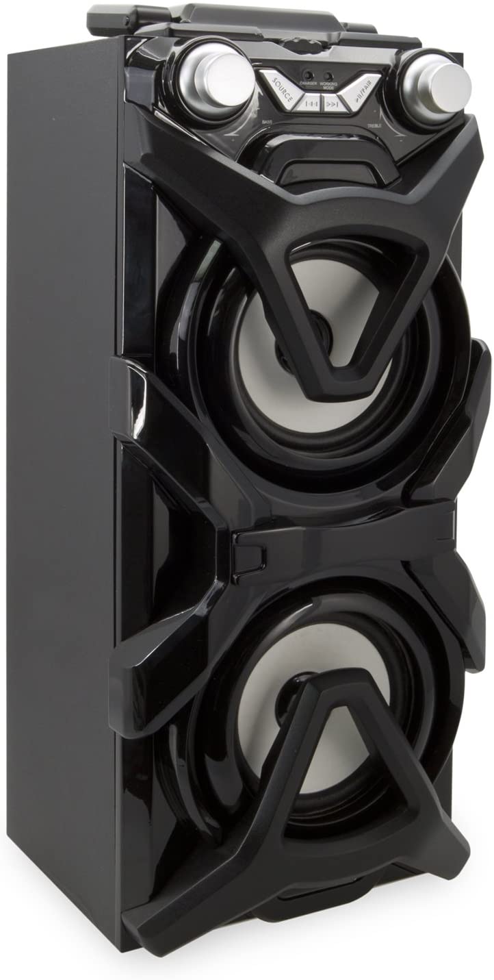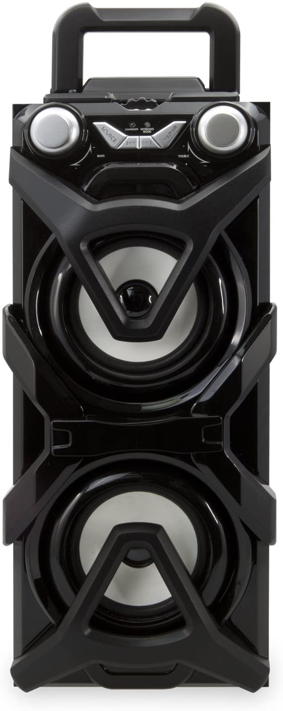 - Portable Bluetooth speaker with dual 4 inch full range speakers