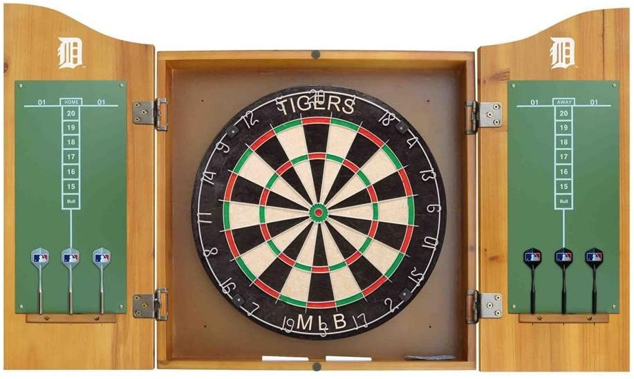 Imperial Officially Licensed MLB Dart Cabinet Set with Steel Tip Bristle Dartboard and Darts