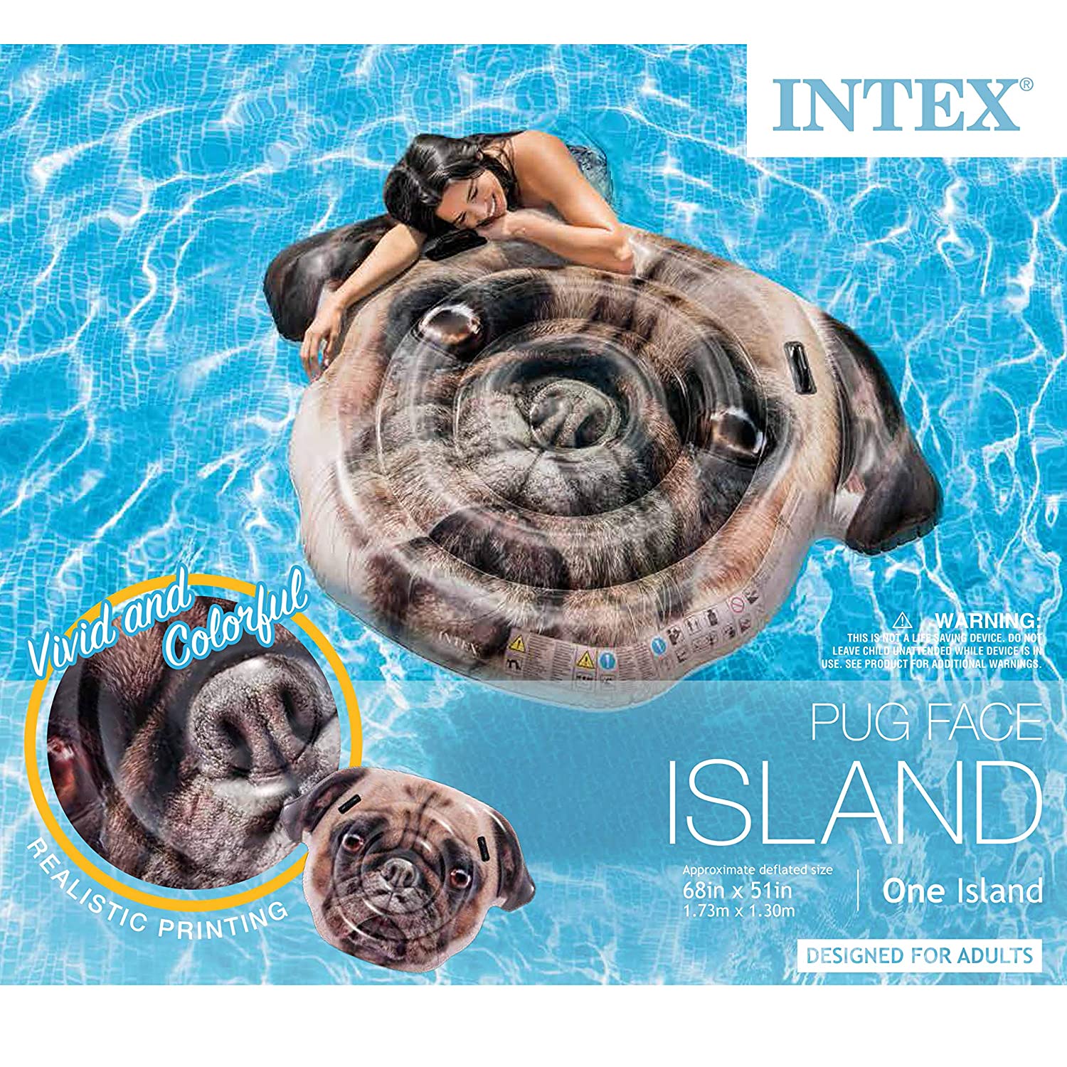 - This adorable Pug face island has realistic printing that will look so cute in the pool
