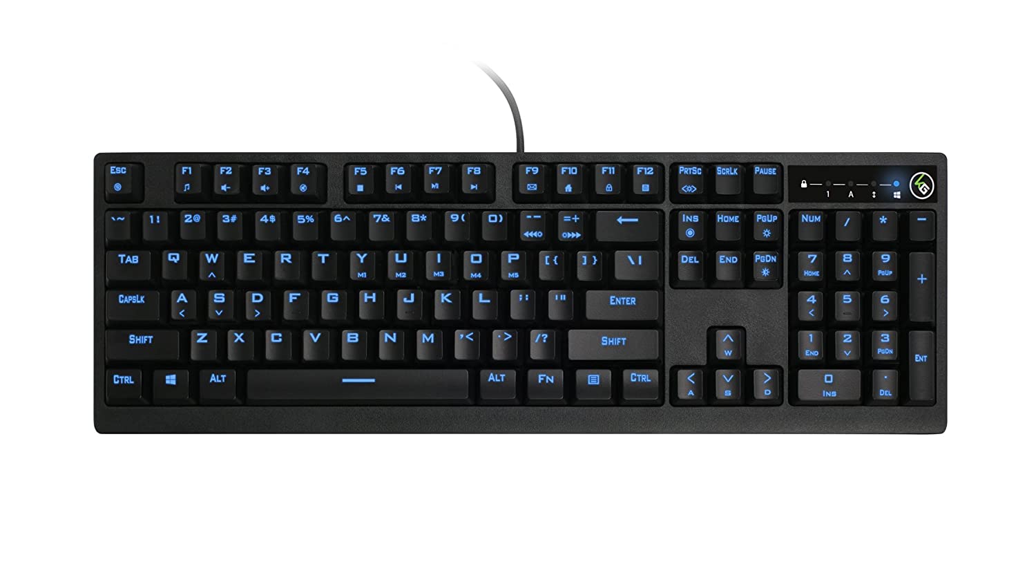 The MECHLITE features fully mechanical keys using Kailh blue switches. These keys deliver a positive 'click' engagement and do not require a full range stroke for proper registration. Now you can game faster and with less hand fatigue than ever before!