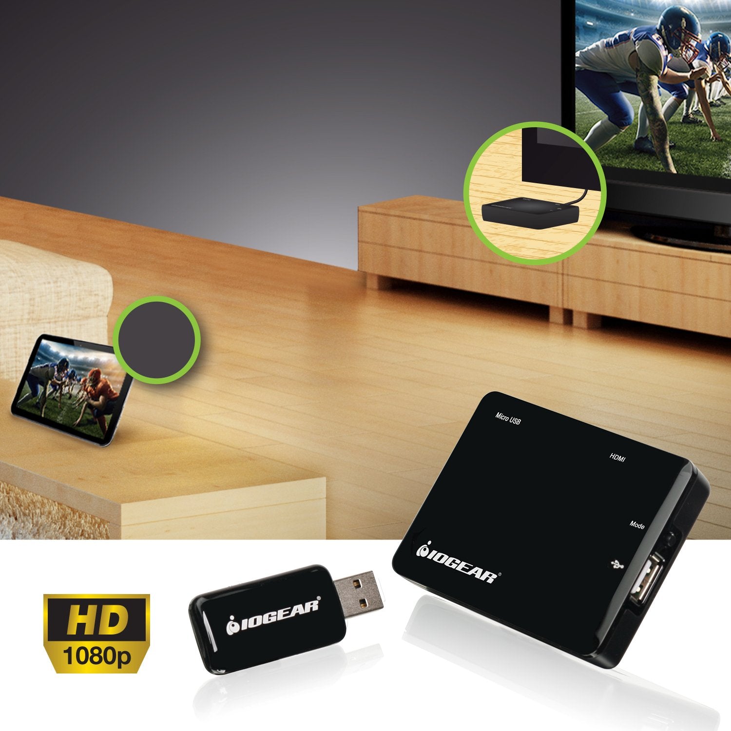 Wirelessly Display your favorite apps, games, videos, photos, music and internet content from your smart phone, tablet or laptop to your HDTV, HD projector or HD Display