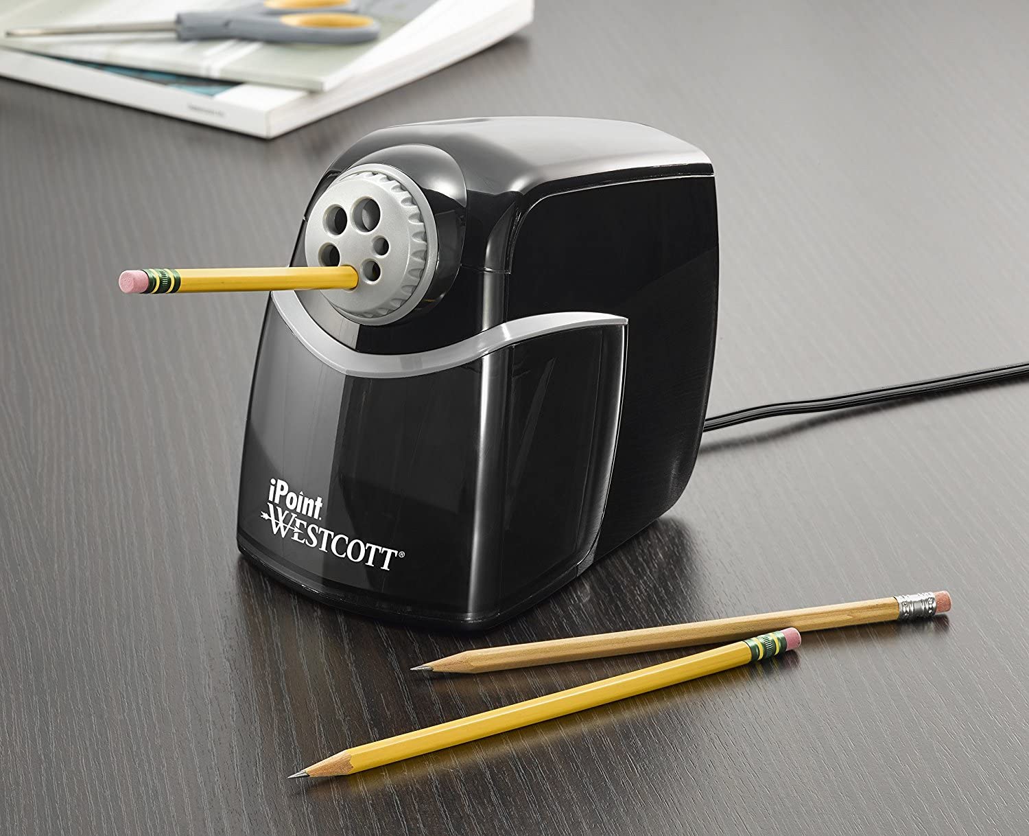 Westcott pencil sharpeners are necessary for any school or Offices that uses pencils regularly. A good Pencil sharpener will keep your writing instrument sharp and ready to use for a long time. Westcott offers a wide variety of pencil sharpeners to meet your every need. This electric pencil sharpener quickly sharpens the tip of your Pencil. The sharpener does all the work, and the container neatly captures all the shavings until its time to empty it. The heavy duty construction ensures long lasting performance. from the manufacturer: Westcott develops home and office products unmatched in style, design and performance. We continue to deliver results that are both inspirational and functional, earning the title of "the world's Favorite Scissors" Year after year.