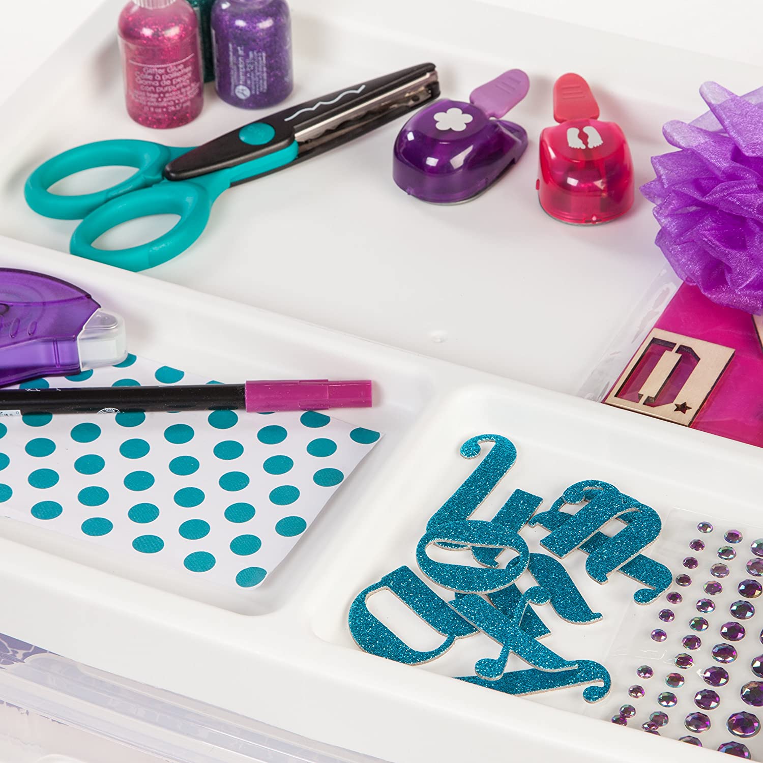 This 6-case scrapbook cart is great for organizing and storing your scrapbook projects and supplies. With six double latched 12 inch x 12 inch cases and a built in organizer top, this is the perfect storage solution in any craft room. Not only can it hold all of your scrapbook paper, but all of your scissors, embellishments, and pens too.