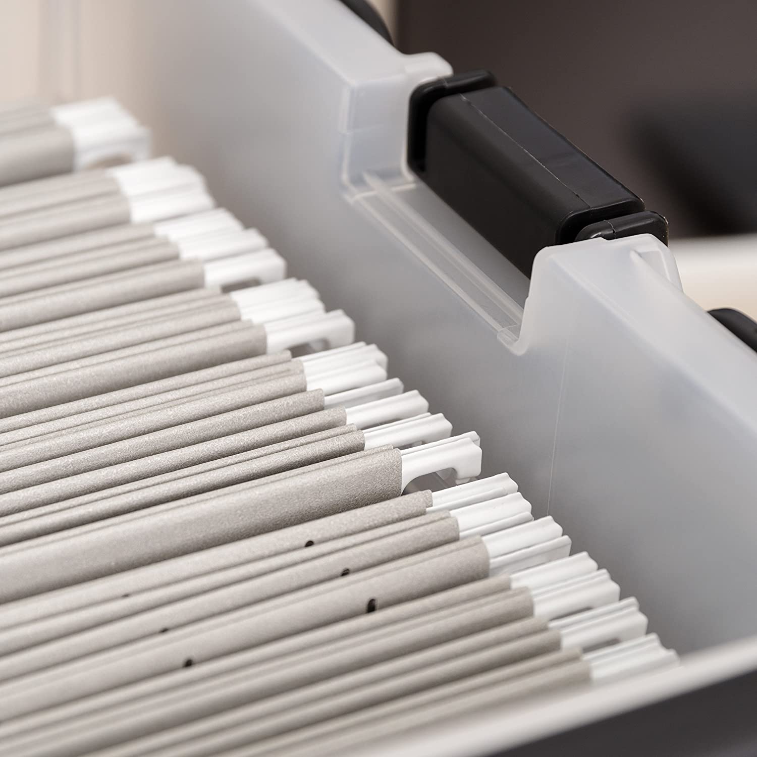- File box is Designed to hold letter-size hanging files