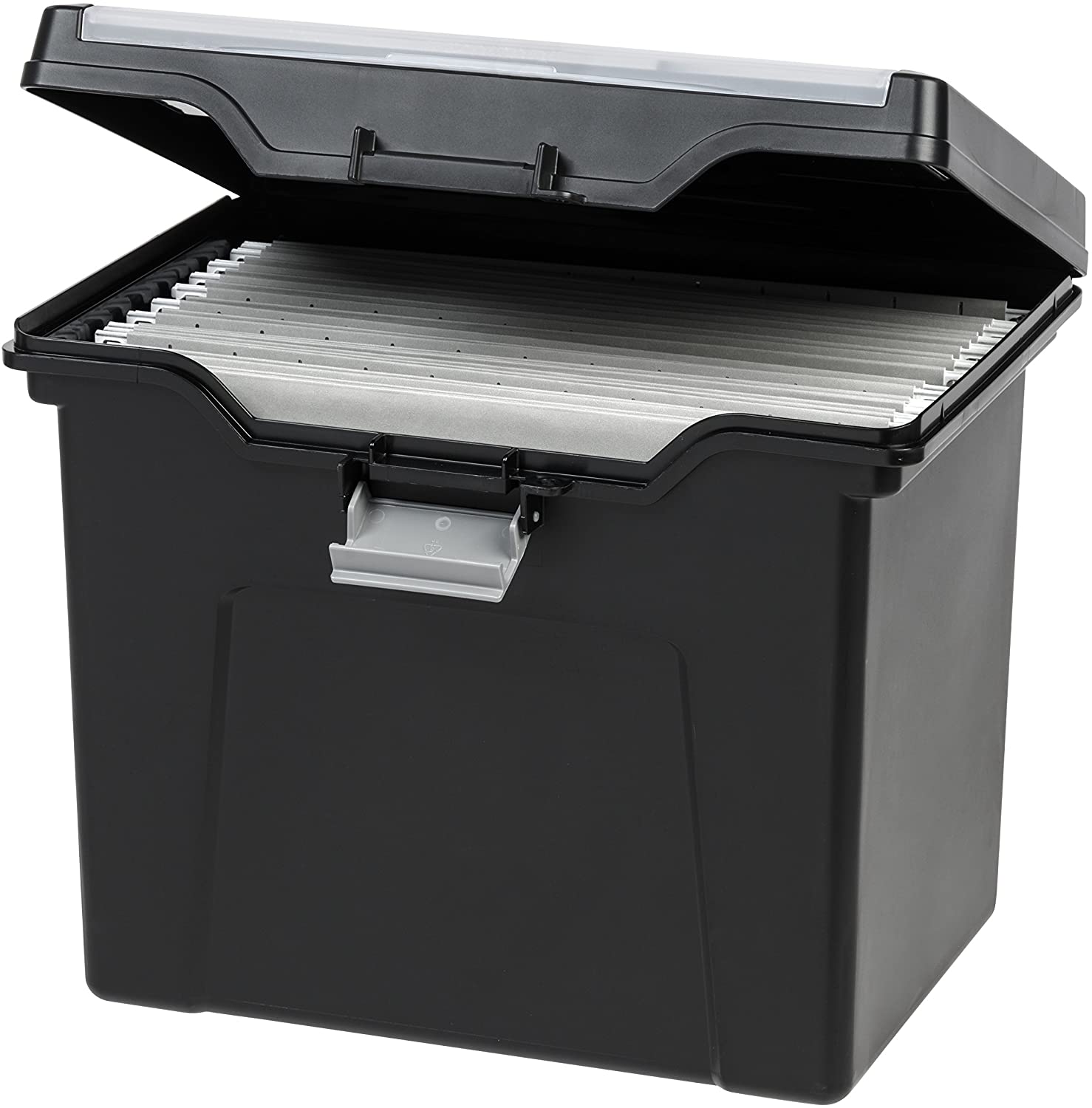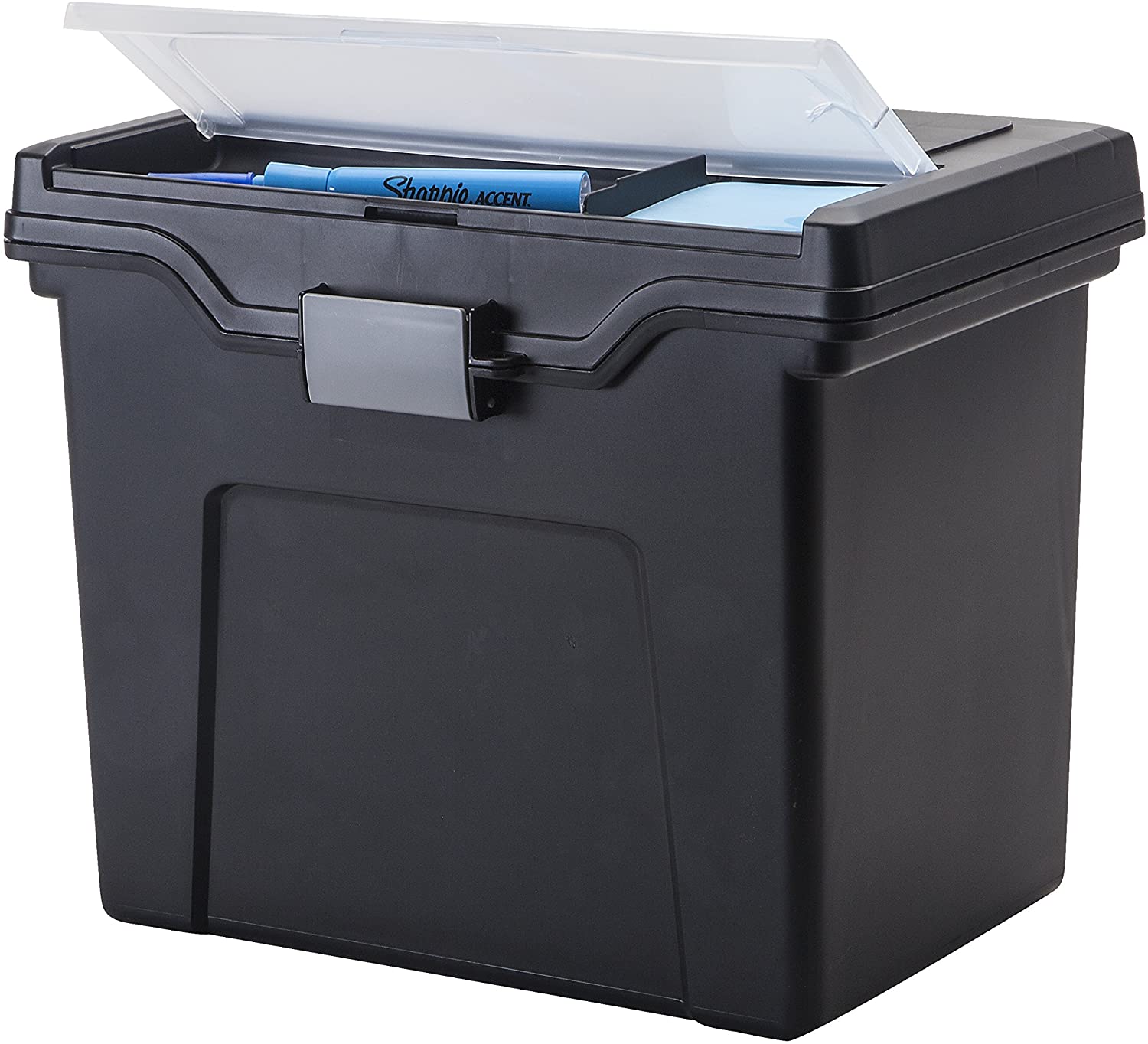 Keep your files protected and organized at home, in the office, or in your car! Secure pens, business cards, and filing essentials in the built-in organizer lid.
